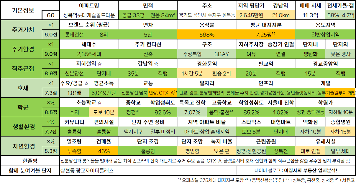 5. 경기도 용인시 수지구 성복동 성복역롯데캐슬골드타운 33평