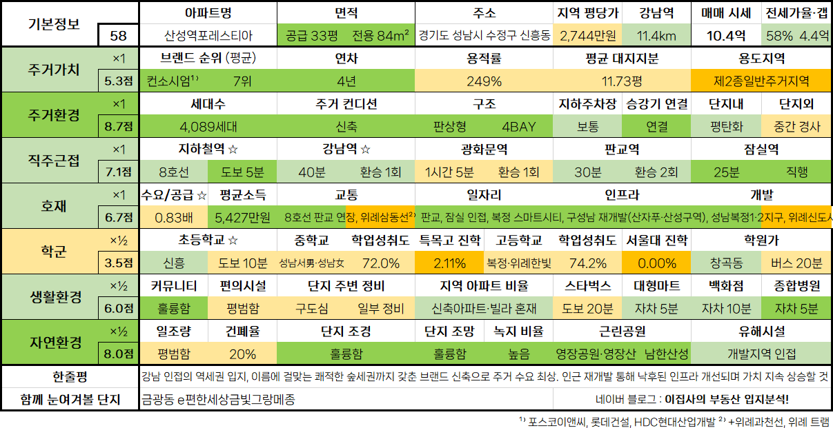 7. 경기도 성남시 수정구 신흥동 산성역포레스티아 33평