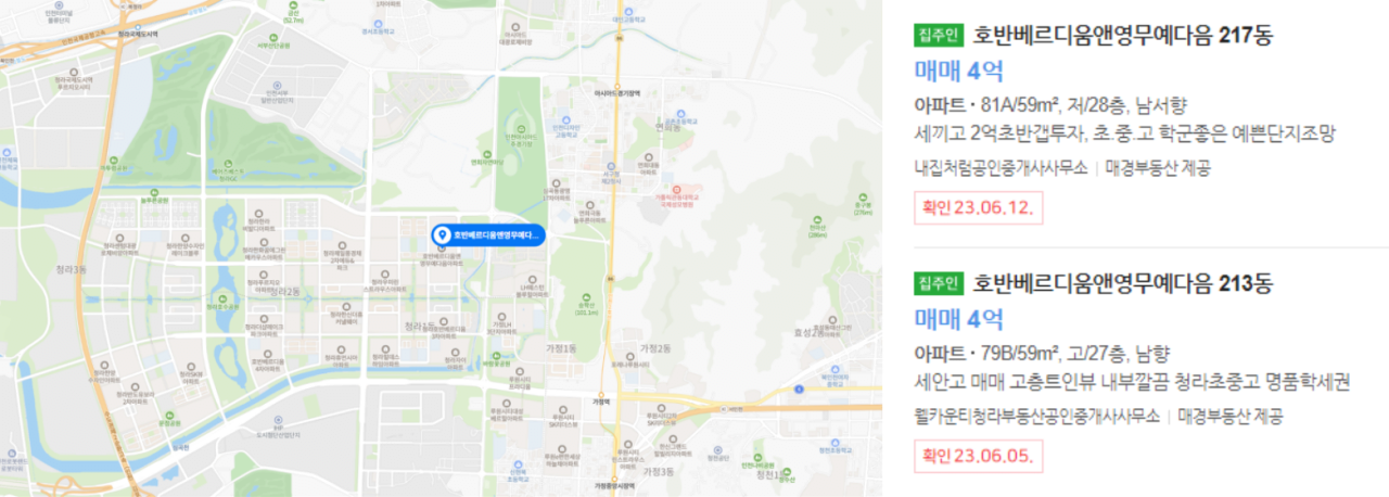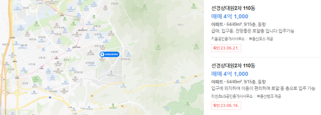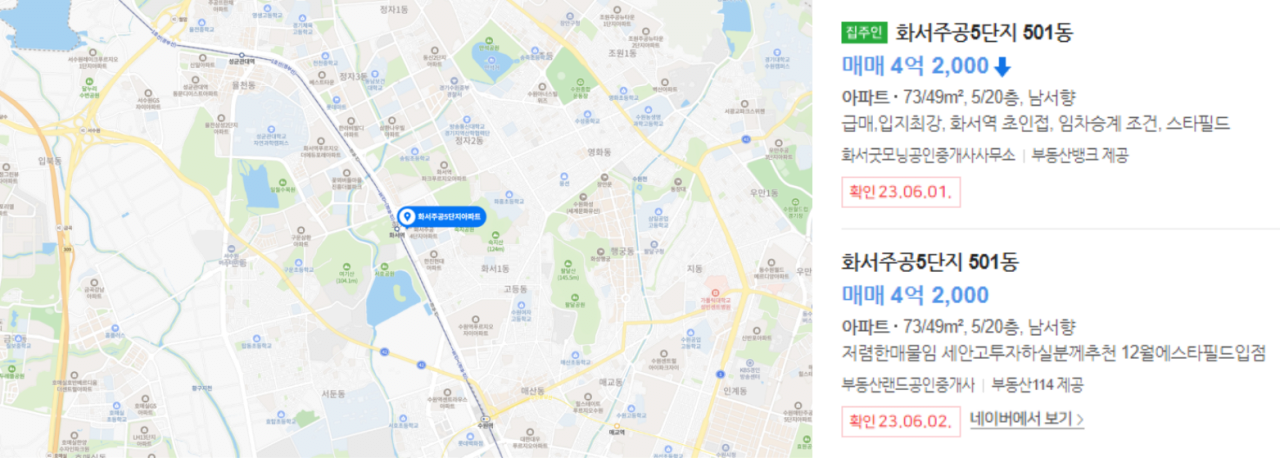 - 네이버 부동산 기준 4억 2천만 원 이하의 입주 가능한 매물이 있는 단지