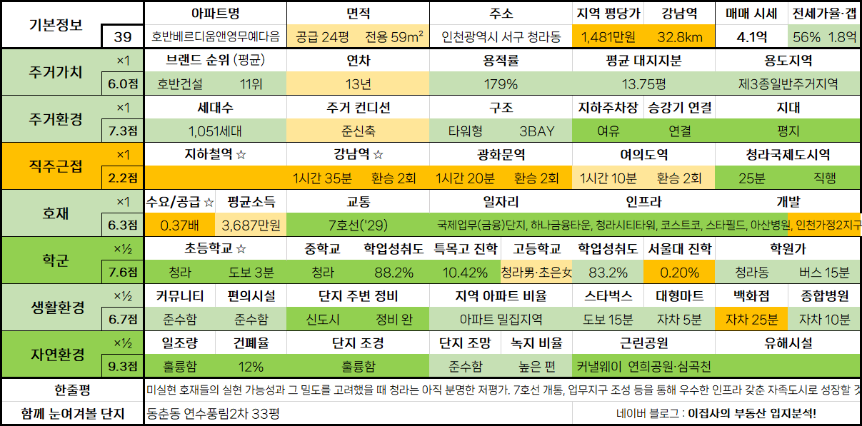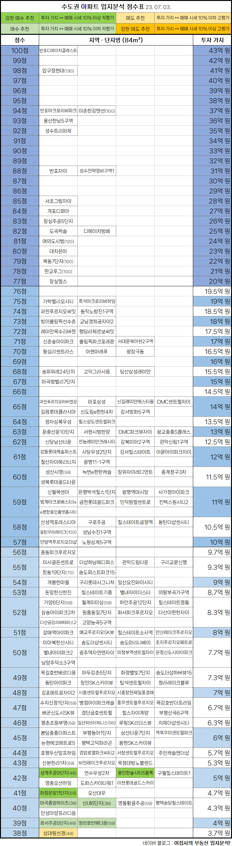 - 수도권 아파트 입지분석 점수표는 매 분기 순차적으로 업데이트됩니다.