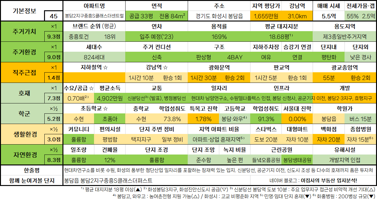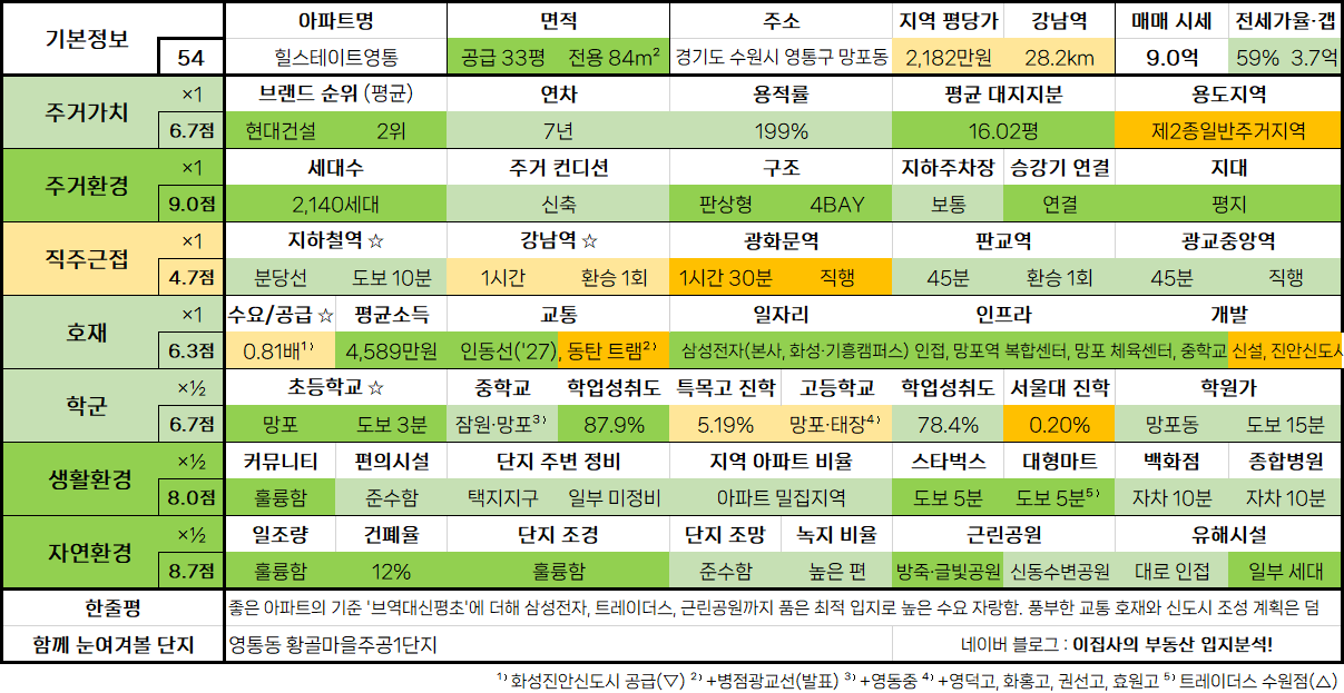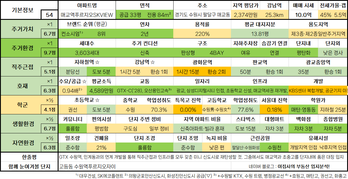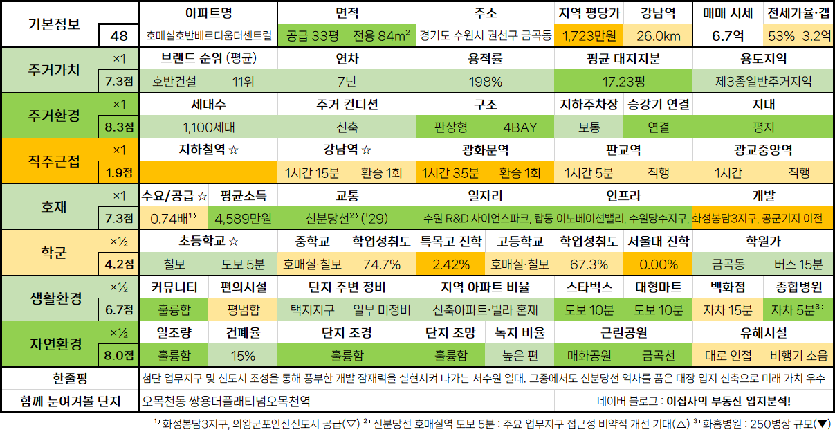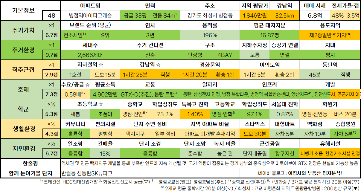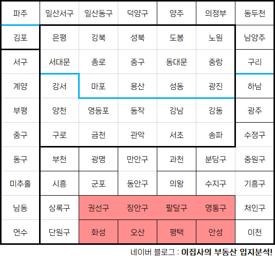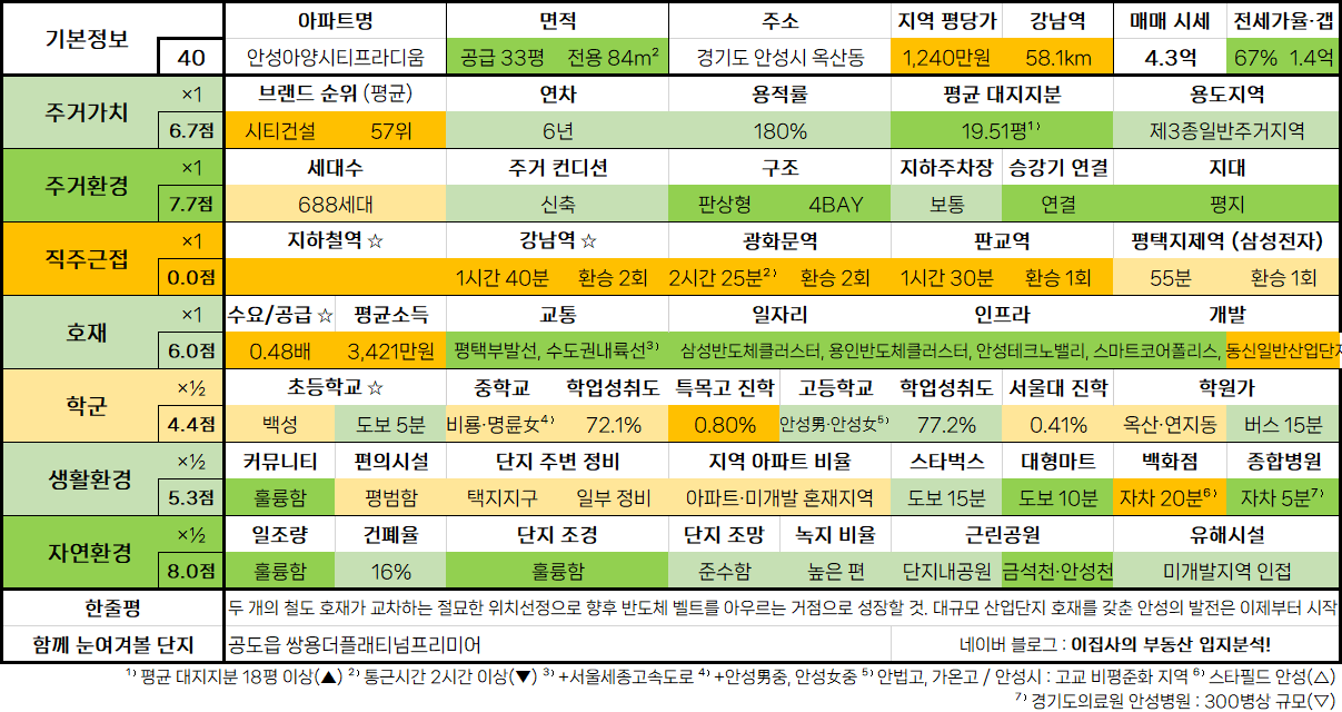 - 수도권 아파트 입지분석 점수표는 매 분기 순차적으로 업데이트됩니다.