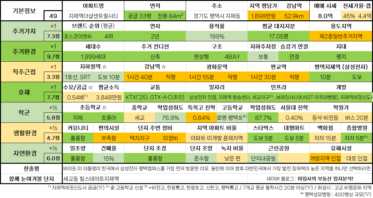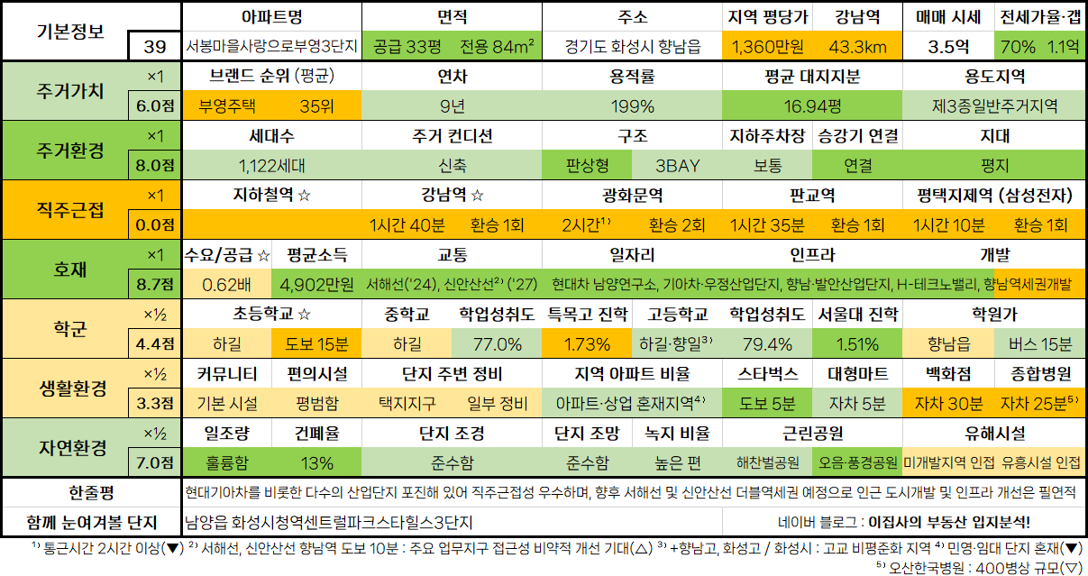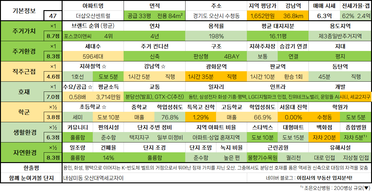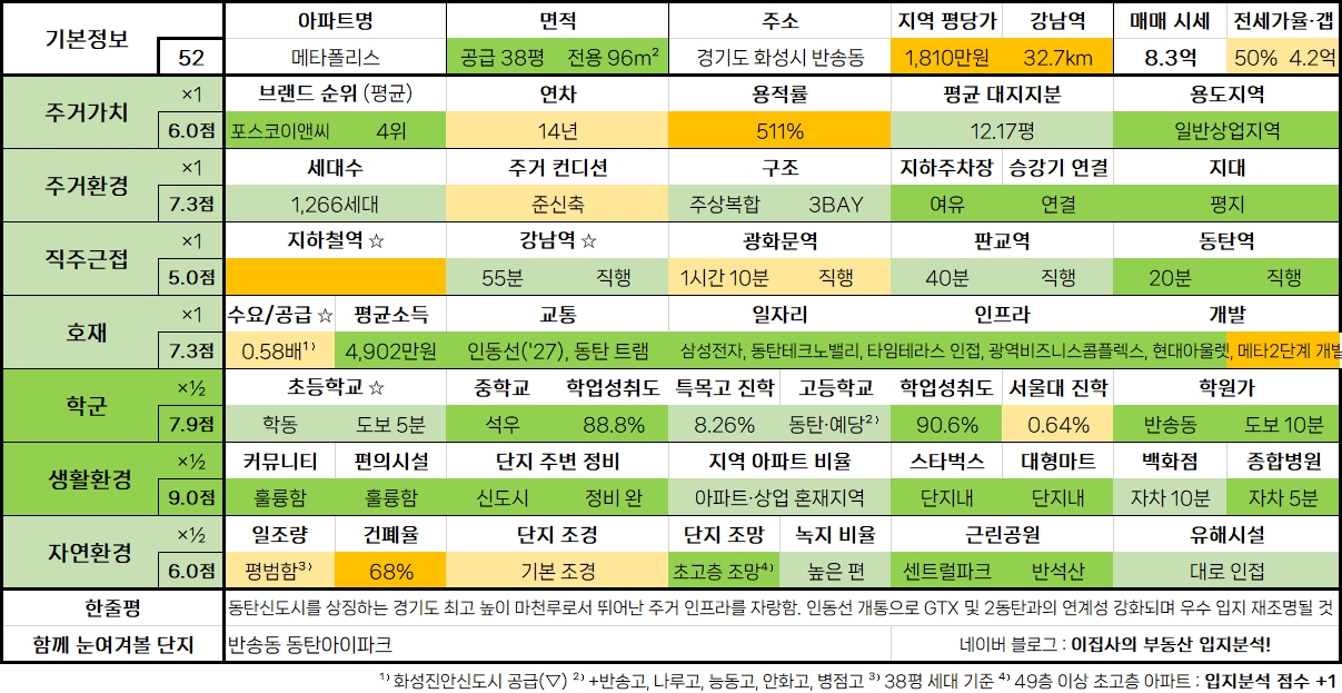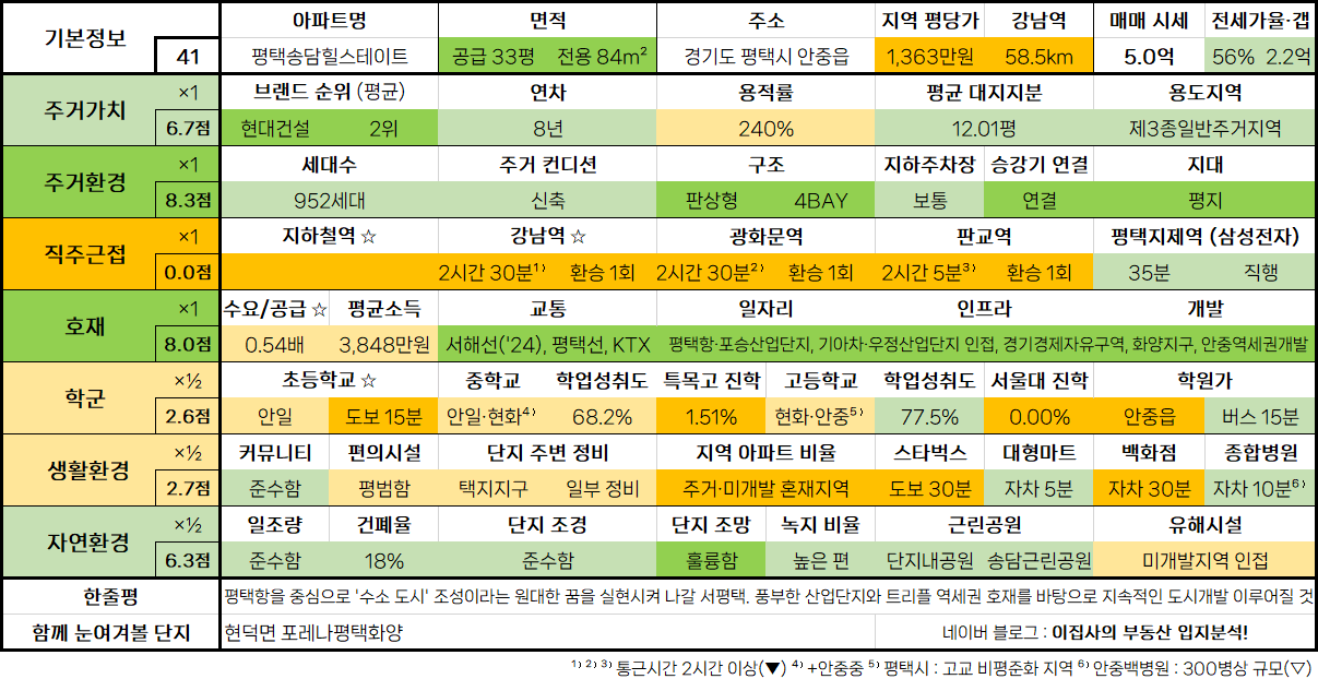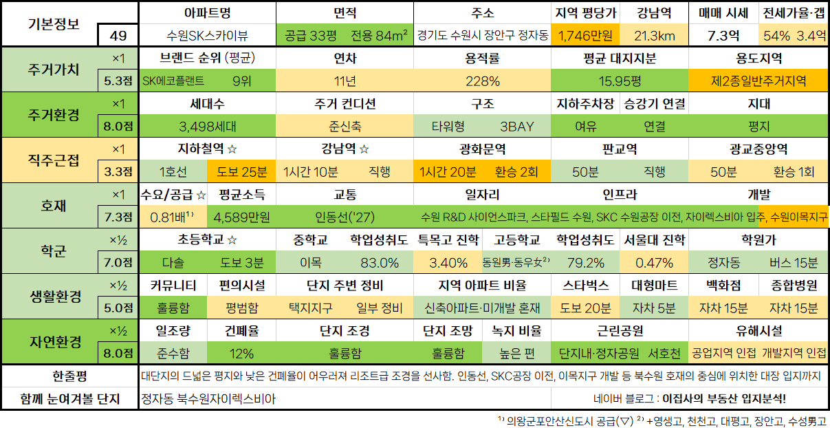 - 수도권 아파트 입지분석 점수표는 매 분기 순차적으로 업데이트됩니다.