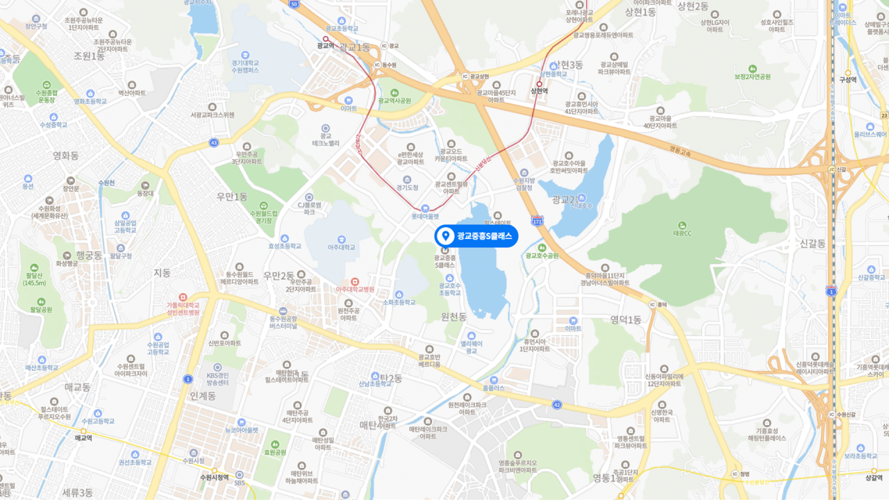 - 경기 남부의 정치, 경제, 문화 인프라가 집적된 최상급지이자 삼성전자를 위시한 풍부한 일자리까지 갖춘 광교. 대장 입지에서 내려다보는 빼어난 호수 조망은 덤
