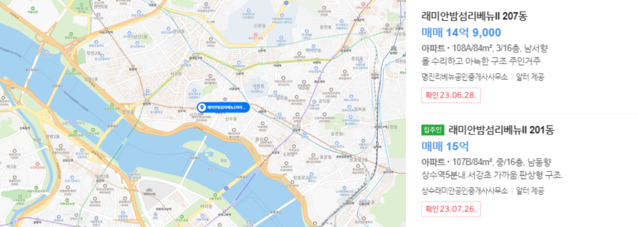 1. 서울특별시 마포구 상수동 래미안밤섬리베뉴2차 33평