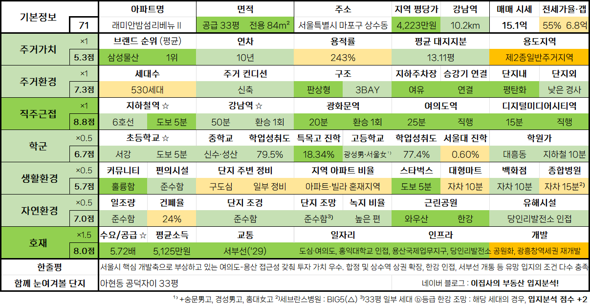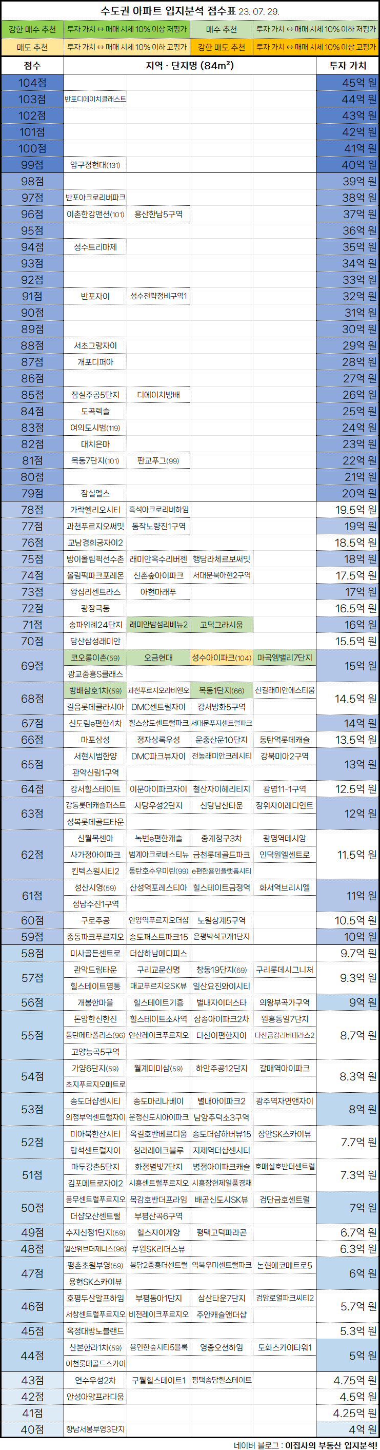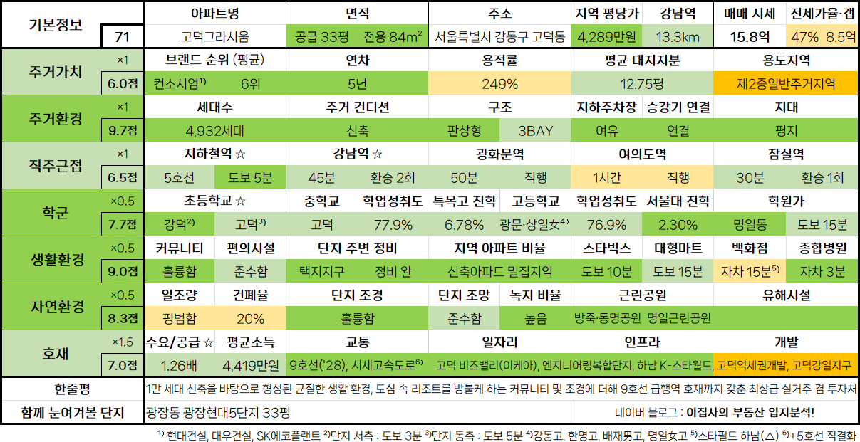 - 수도권 아파트 입지분석 점수표는 매 분기 순차적으로 업데이트됩니다.