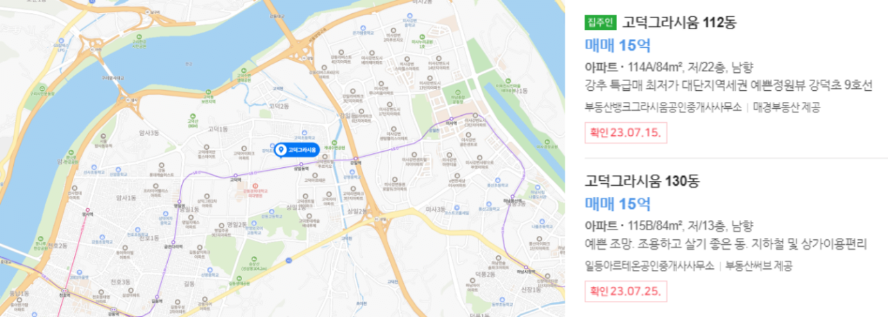 - 네이버 부동산 기준 15억 2천만 원 이하의 입주 가능한 매물이 있는 단지