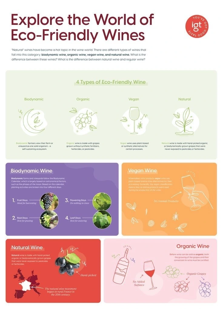 이 양극단 사이에 수많은 와인들이 존재합니다. 예를 들면 유기농 재배한 포도로 만들지만 생산자가 인공 효모를 비롯한 여러 첨가물을 넣는 와인도 있고 바이오 다이나믹 농법으로 재배한 포도를 사용해 자연 효모를 이용해 발효시키며 최소한의 첨가물만 넣지만 여과 및 청징 과정을 거치는 와인도 있어요.