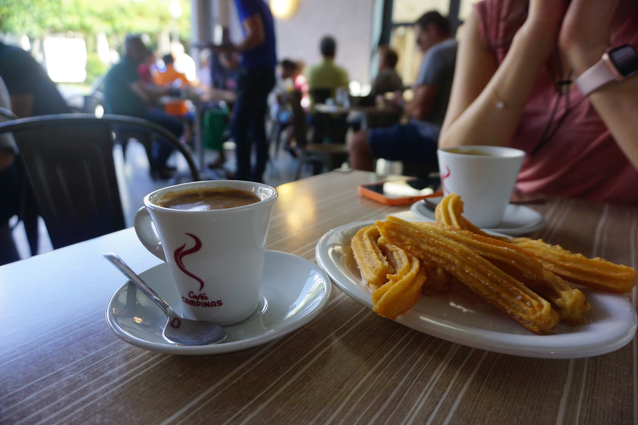 점심을 먹기엔 늦은 시간이라, 가볍게 추로스와 핫초코