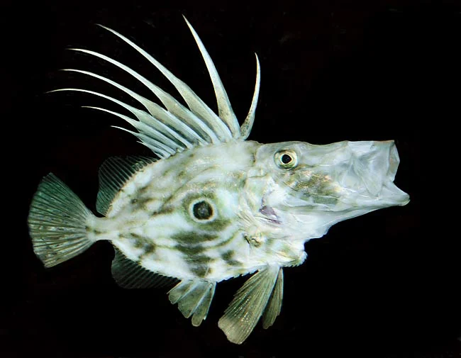 이 물고기는 올리브색 녹색이며 배는 은백색이고 옆구리에 검은 반점이 있다. 눈은 머리 꼭대기에 가깝다. 몸은 납작하고 둥글며 수영실력은 좋지 않다. 먹이를 몰래 쫓아가서 잡은 다음, 턱을 튜브처럼 앞으로 내밀어 물과 함께 물고기를 빨아들인다. 그러면 물은 아가미를 통해 빠져나간다. 이 물고기의 유일한 이빨이 있는 뼈인 상악골은 음식을 갈아내는 데 사용된다.