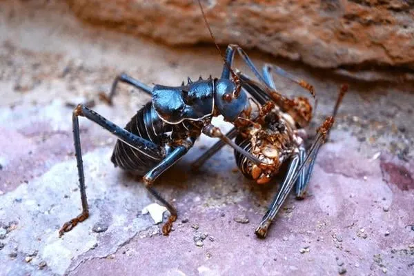 한 자료에 따르면 붉은부리퀘일라 새끼가 공격을 받은 사례가 기록되어 있으며, 이 곤충은 청각적 단서로 둥지를 감지할 수 있을 것이라고 한다. 특히 먹이에 단백질과 염분이 부족하면 이 종의 구성원은 흔히 동족을 잡아먹는 행동을 하게 되며, 가을에 개체 수가 정점에 달하고 그중 일부가 도로를 건너 교통 체증에 갇히면 동족을 잡아먹는 동족이 희생자 주위에 모여 먹이를 찾아 결국 희생자가 죽게 된다.