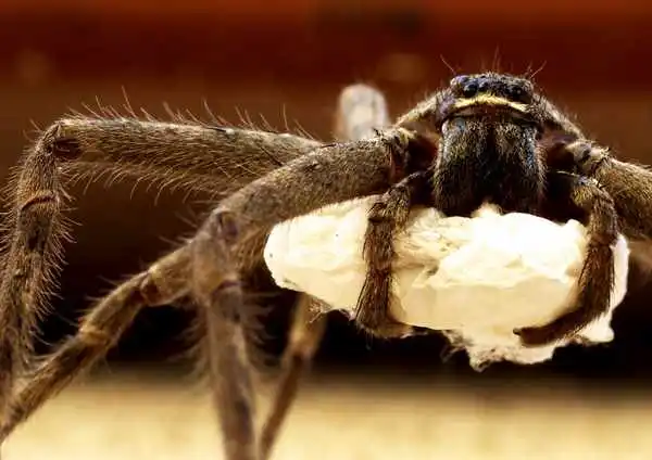 야행성으로, 낮에는 그늘 등에 숨어 있다가 밤이 되면 숨은 장소에서 기어 나온다. 그리고 천장, 벽 등으로 다리를 벌리고 기어가 바퀴벌레나 파리, 나방, 집게벌레 등을 사냥한다. 먹이를 씹어서 체액을 흡입한다.