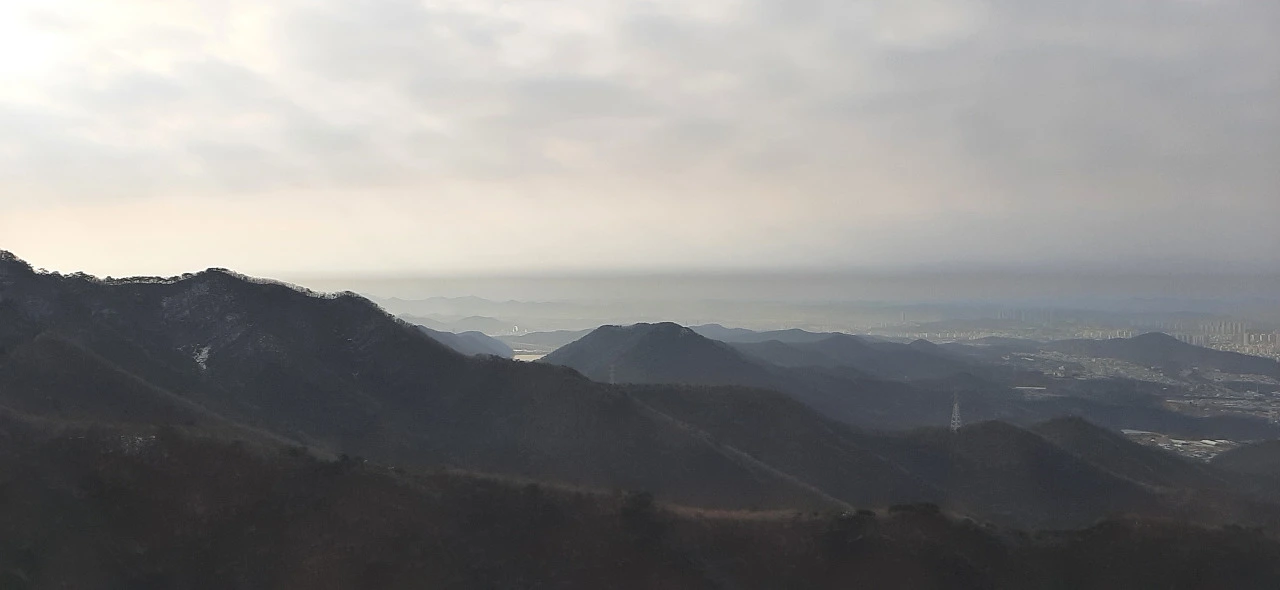 그래도 너무 뒤처지지 않게 속도를 냈더니 어제 혼자 오를 때보다 시간이 10분 정도 단축되었다. 정상에서 따뜻한 커피와 빵집에서 사 온 샌드위치 한 조각씩을 먹고 하산했다. 오는 길에 과일 채소가 싱싱하고 싼 로컬푸드직매장에 들러 장을 보고 가끔 생각나서 일부러 먹으러 가는 서운칼국수를 사 먹고 돌아왔다.