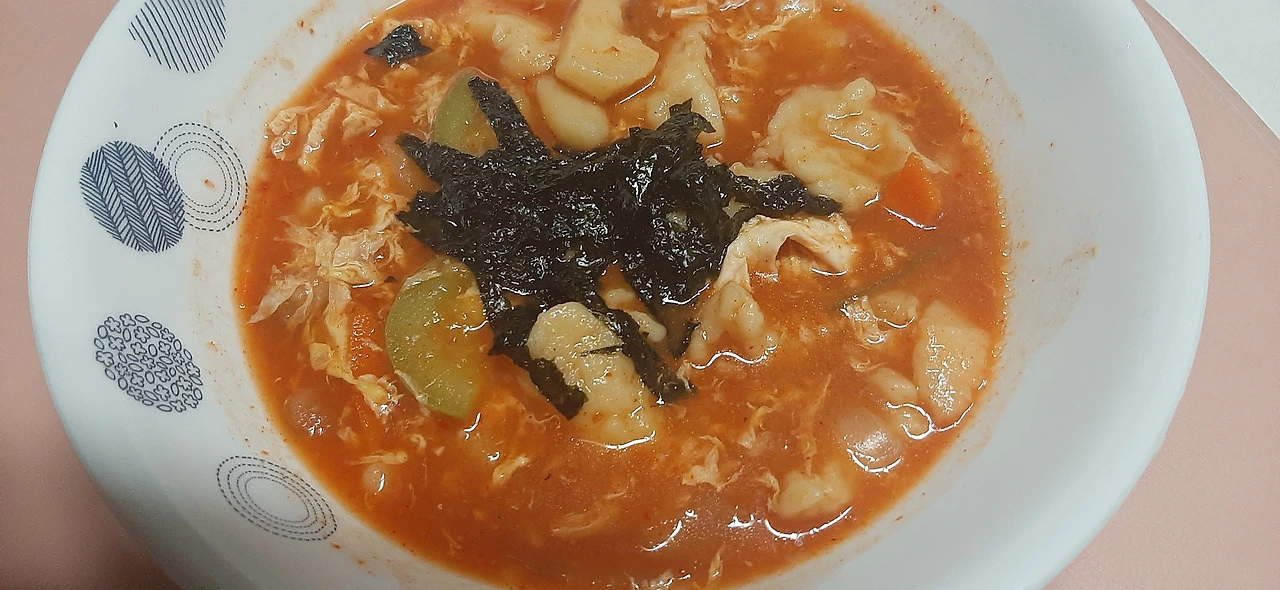 오전 11시 넘어 느지막이 일어난 남편도 새벽에 들어온 아들도 부스스한 몰골 그대로 식탁에 나와 앉았다. 처음 해 본 수제비라 수제비 모양과 두께가 고르지 않고 좀 엉망이었지만 계란을 넣어서인지 부드러웠다. 특히 국물맛이 괜찮았다.