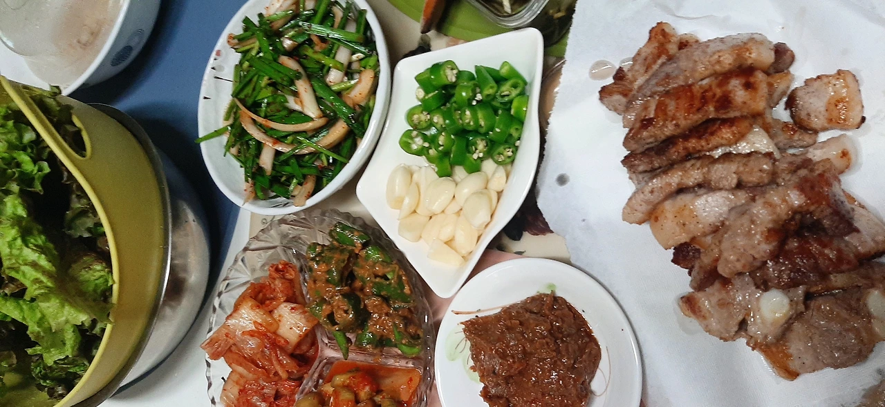 삼겹살은 정말 고소하고 부드러웠다. 마늘과 청양고추와 부추무침과 쌈장을 넣고 쌈을 싸서 입안 가득 넣고 씹으면 달짝지근하기까지 했다. 나는 또다시 아들을 느끼하게? 쳐다볼까 조심스러워 거의 눈을 내리깔고 먹었다.