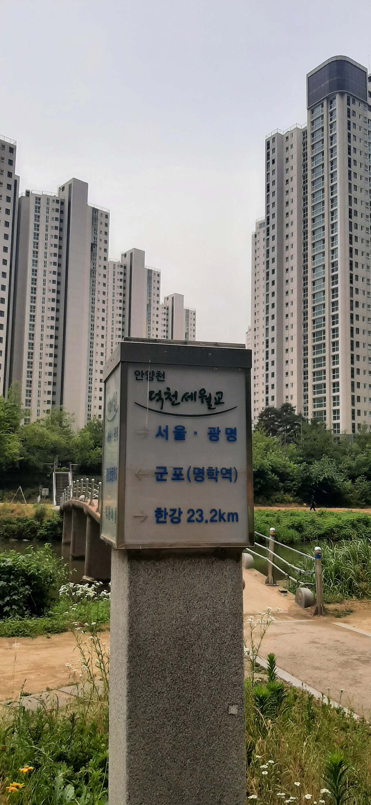 안양천 덕천세월교 밑 이정표에는 '한강 23. 2 km'라고 쓰여 있다. 손목의 스마트워치를 확인한다. 12시 10분이다. 비는 내리지 않지만 먹구름이 잔뜩 몰려들어 있고 바람의 온기와 세기는 아주 적당하다. 걷기에 안성만춤인 날씨다. 큰 비만 오지 않는다면. 나는 그렇게 출발했다. 늘 그렇듯, 느닷없이, 충동적으로.