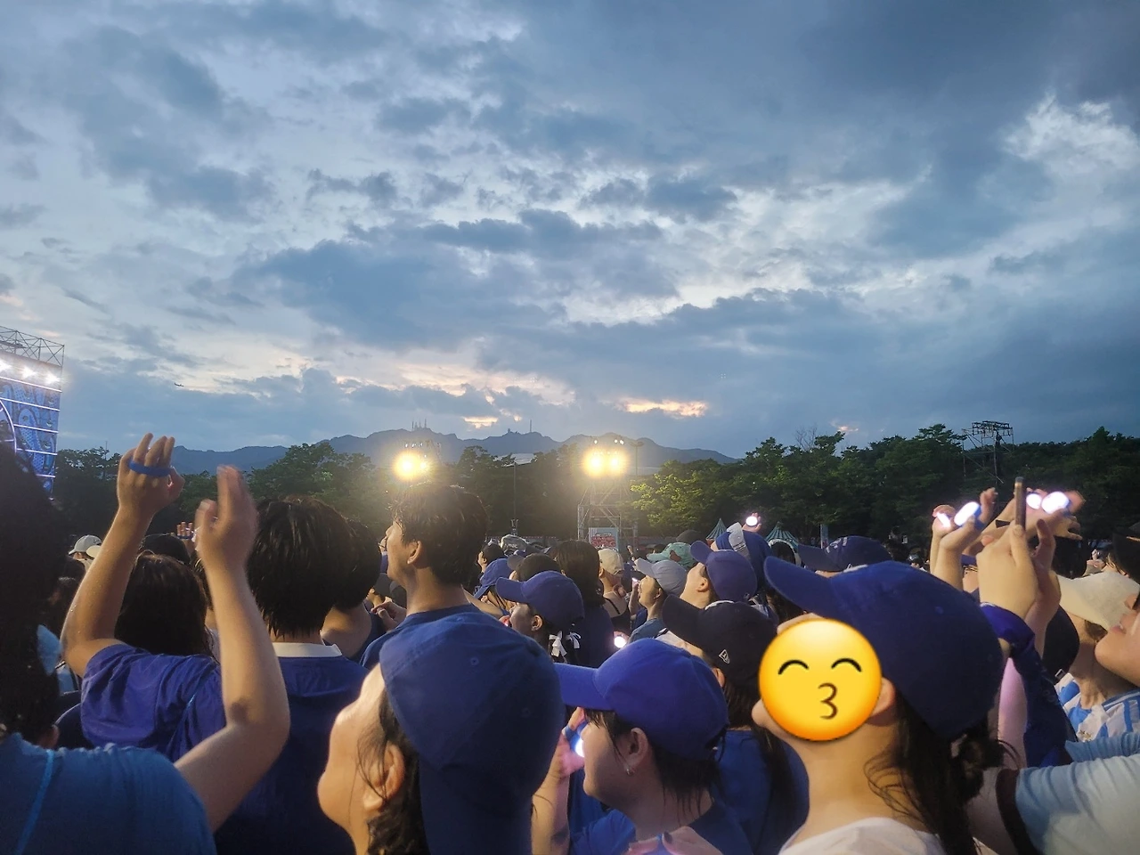 우비를 입은 사람도 있고 입지 않은 사람도 있었다. 우리는 우비을 입었을 때의 후텁지근함이 싫다고 입지 않았다. 여벌 옷도 갖고 왔으니까... 그런데 돌아보니 나눠준 파란색 비닐쌕 외에 나처럼 개인용 백팩을 멘 사람은 보이지 않았다. 모두 자차를 갖고 오진 않았을 터인데... 젖은 채로 귀가하려나... 열대야에 가까운 날씨라 빨리 마르기는 하겠지만... 궁금증은 막 시작되는 음악과 함성에 묻혀 버렸다.