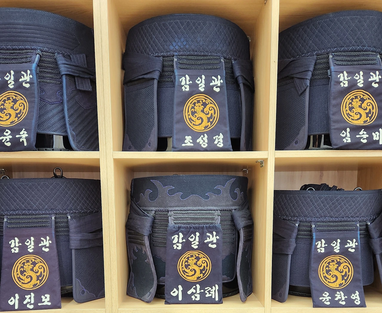 나의 설렘은 유리에 금 가듯 와장창 깨졌다. 다리 아픈 것은 둘째였다. 호구를 입는 절차가 너무 어렵고 무거웠다. 도복도 겨우 편해졌는데 그 위에 호구를 착용하니 얼마나 힘든지. 연습이 끝나면 호구를 정리해 갖다 놓는 것도 힘들었다. 호면을 쓰고 연습할 때 눈에 땀이 들어가면 이러지도 저러지도 못하고 쩔쩔맨다. 옷을 벗기 불편하니 목이 말라도, 화장실도 참아야 한다. 그래서 도장 가기 전 물을 마시지 않았다. 옛날 장군들은 이 무거운 걸 입고 쓰고 전쟁터에서 어떻게 싸웠을까. 그 옛날에 안 태어나기를 백번 잘했다.