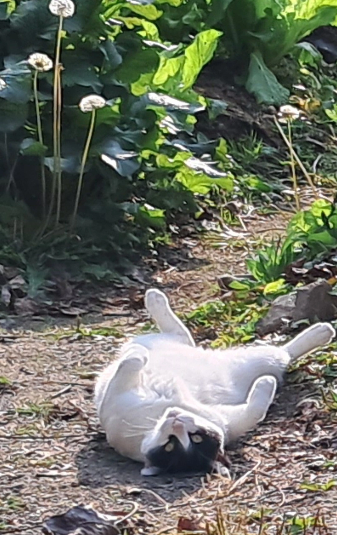 기분이 좋은 새끼들이 밭에 앉아있는 참새를 꼬나보고 있다. 까불이도 어렸을 때 사료를 먹고 나면 새들을 쫓아다녔다. 새끼들은 까불이 어렸을 때 하던 짓을 똑같이 하고 있다. 그래 그렇게 맘껏 뛰어라. 나무 타고, 땅에서 뒹굴고, 멍을 때리면서 타고난 소질을 계발하여 개성 있는 고양이로 자라다오.