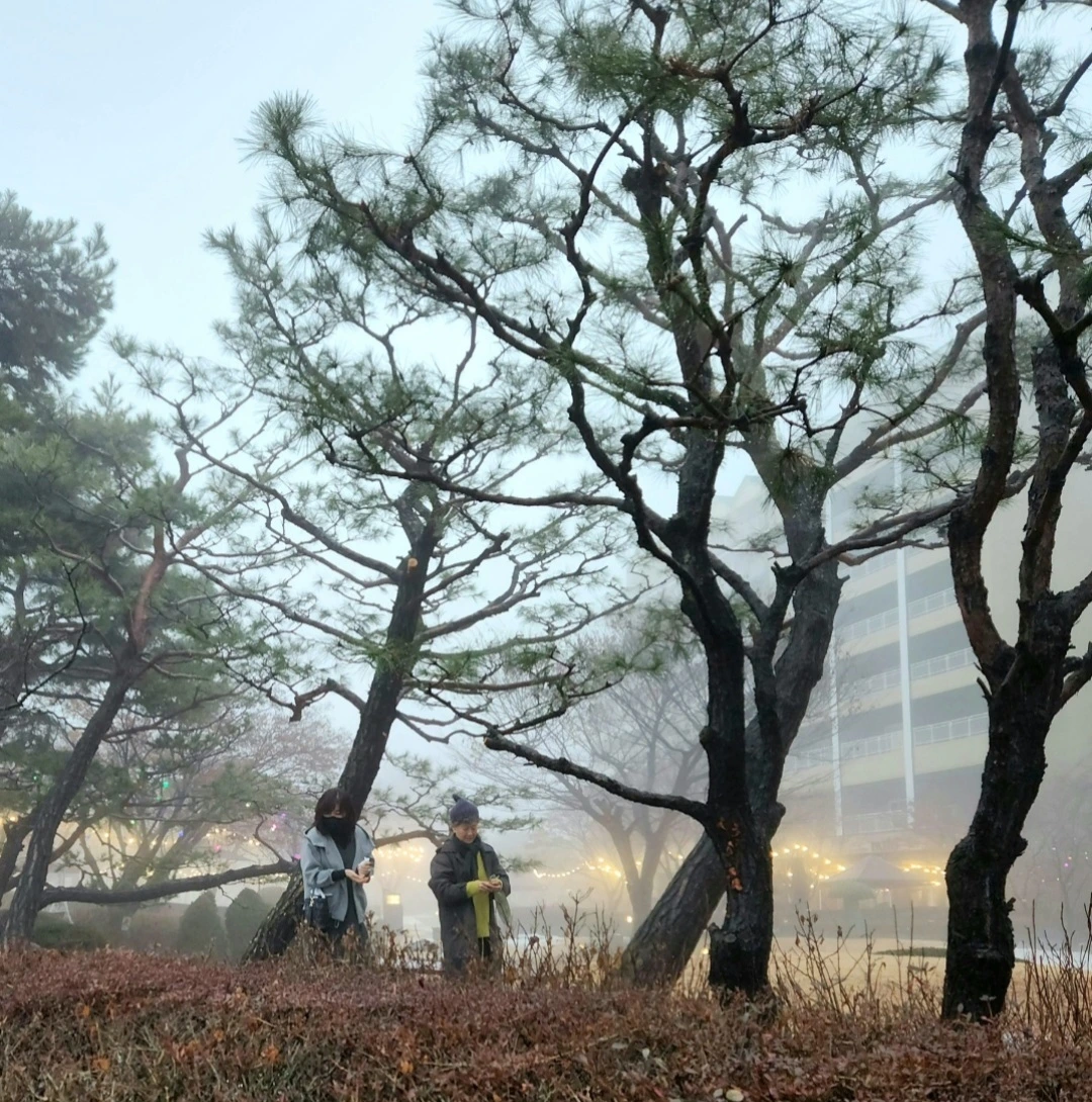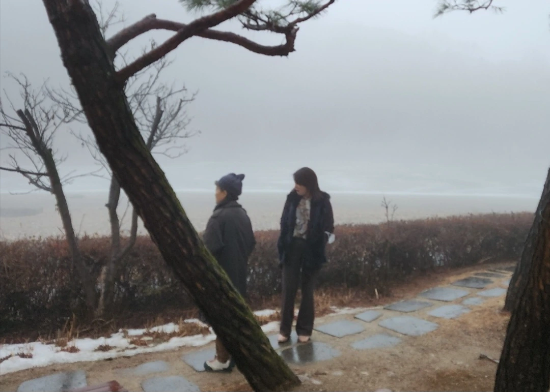 우리는 식사를 끝내고 보슬비에 녹고 있는 눈을 밟으면서 걸었다. 우리가 묵을 호텔 앞에 상수원 보호구역이라고 써진 천에 물안개가 자욱했다.