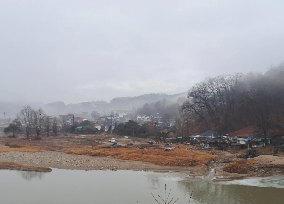물안개 싸인 개천 건너편 집들을 보면서 몇 년 전 미얀마 인레호수 가에서 보았던 집들이 떠올랐다. 인레호수 가에서 본 집들은 색이 바랜 운동화 같았지만 평화롭게 보였다. 그런데 개천 건너편 희미한 집들은 죄 없이 사과하고 사라져 버릴 것 같았다. 아마 날씨와 기분 탓인 것 같았다.