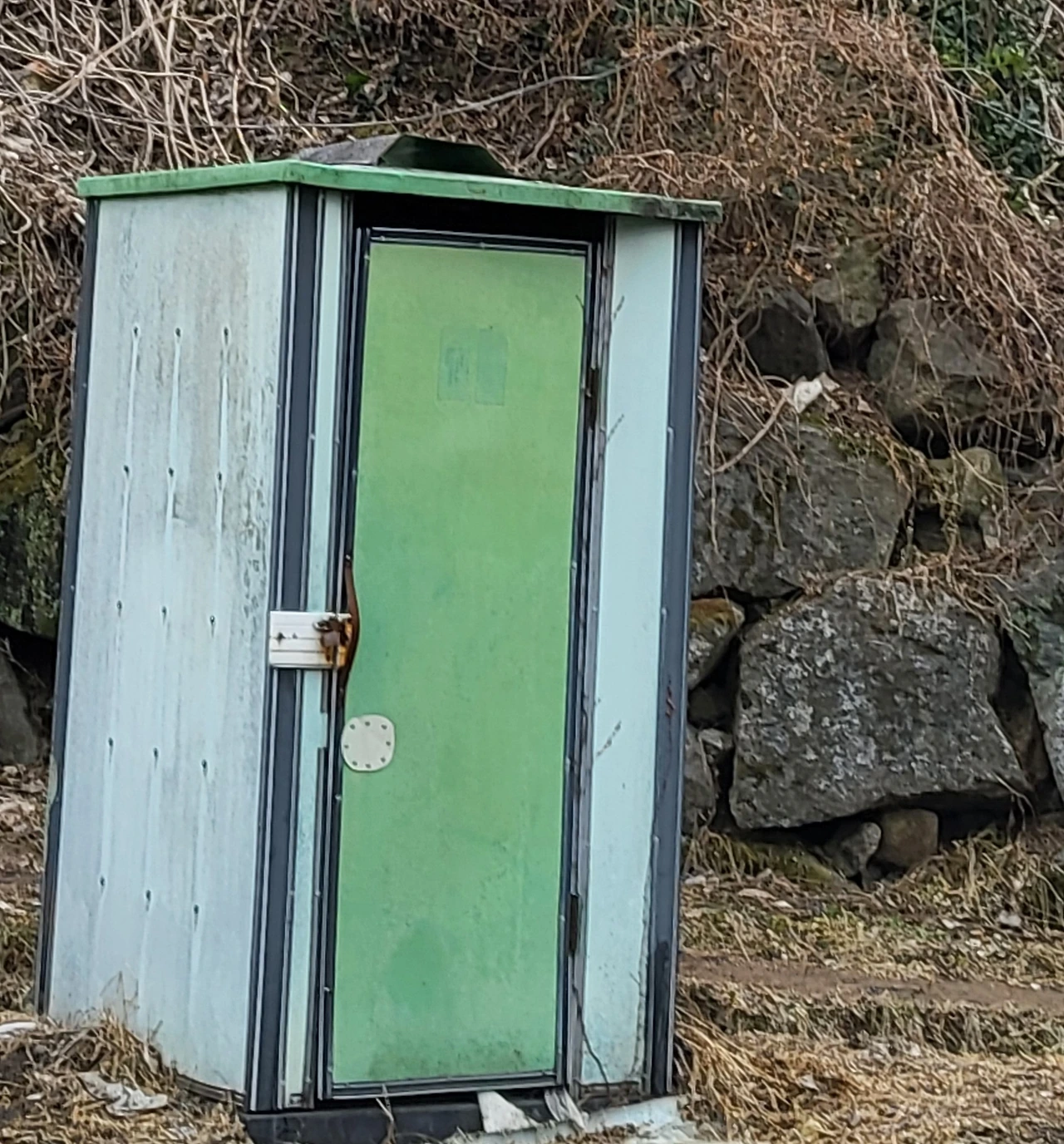 텃밭 끝에 야외 이동식 화장실이 있다. 이사 온 지 며칠 지났을 때였다.