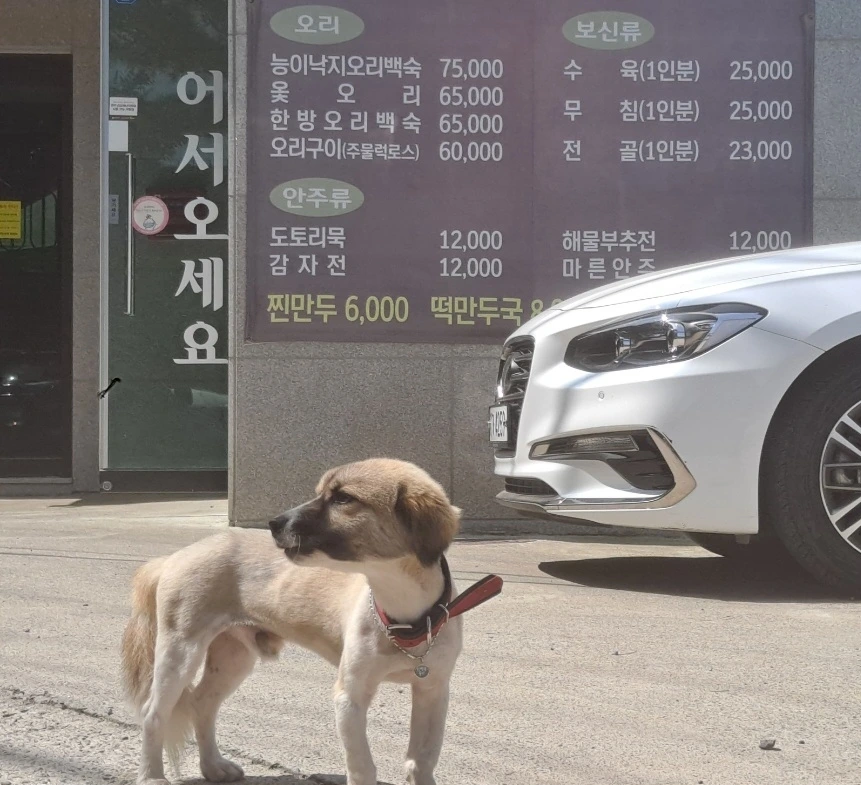다른 집 다 두고 하필 보신탕집 앞에 두고 오다니. 그 말이 된장이여 똥이여!