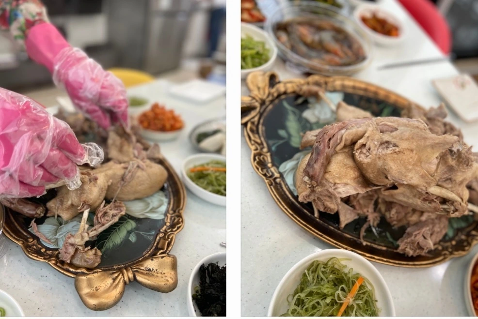 물을 끓여 털을 뜯은 후. 배를 가르고 내장을 끄집어내면 몸 안엔 덜 자란 달걀이 몽글몽글 뭉쳐있었다. 그것을 떼어내 모래주머니랑 그릇에 담아두고, 창자는 소금에 뿌득 뿌득 몇 번을 문질러 물에 헹구어 낸다. 창자는 어떻게 요리를 했는지 기억이 나지 않는다. 엄마한테 물어볼 수가 없다. 하늘에 계시니.