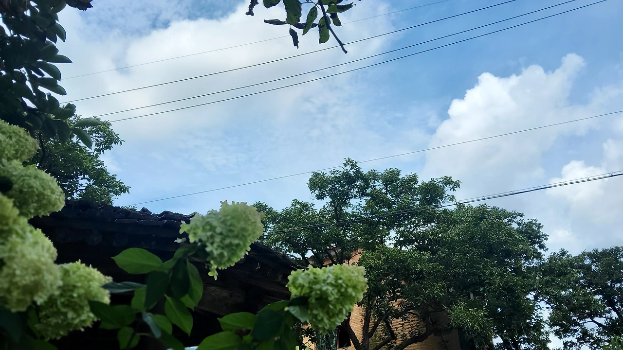 핸드폰을 챙겨 집 앞 연자방아로 붕 뛰어올랐다. 걸음을 멈추었다. 수국이 활짝 피었다.
