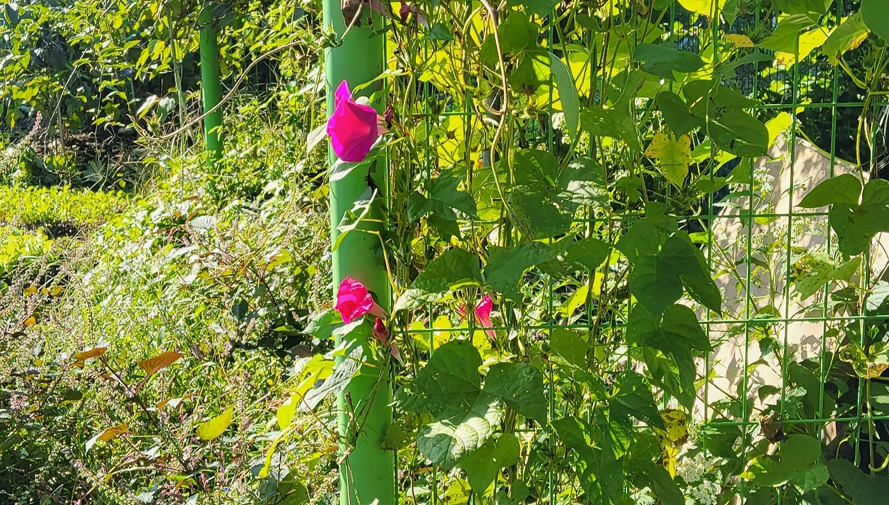 호박은 성길씨랑 같이 따서 먹으려고 심었고 나팔꽃은 할머니가 좋아해 심었다.