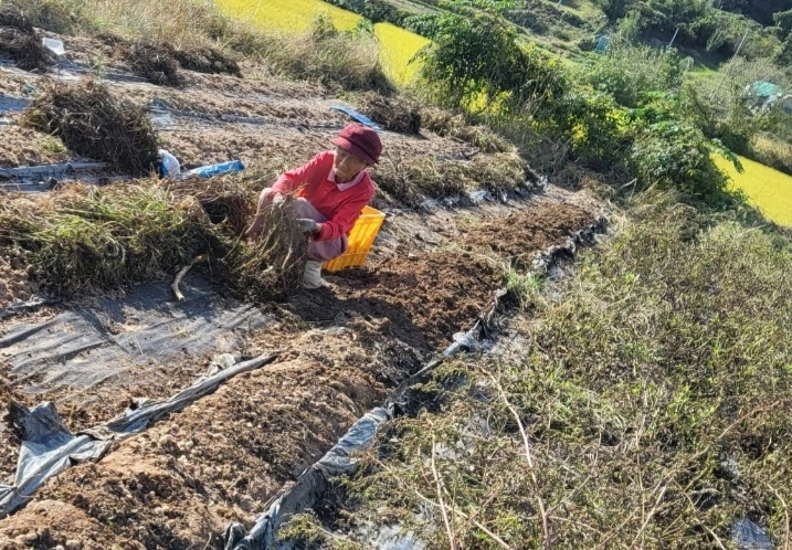 -언니, 팔다리 빠지겄네, 내년에는 농사 반만 지어.