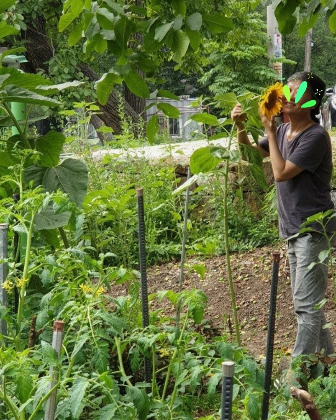 고추도 비실비실했다. 뭔 일인가 생각했다. 그래 햇빛 탓도 있지만, 이거는 필시 거름 부족이다. 혼자 단정 지었다(놀러 온 친구들이 성길씨 밭이 저렇게 잘되는 것은 분명히 거름을 줬을 거라고 내게 말한 것도 일조했다.) 가지 세 개 모종한 것 중 하나가 더 비실비실했다. 그 옆 토마토도 마찬가지였다.