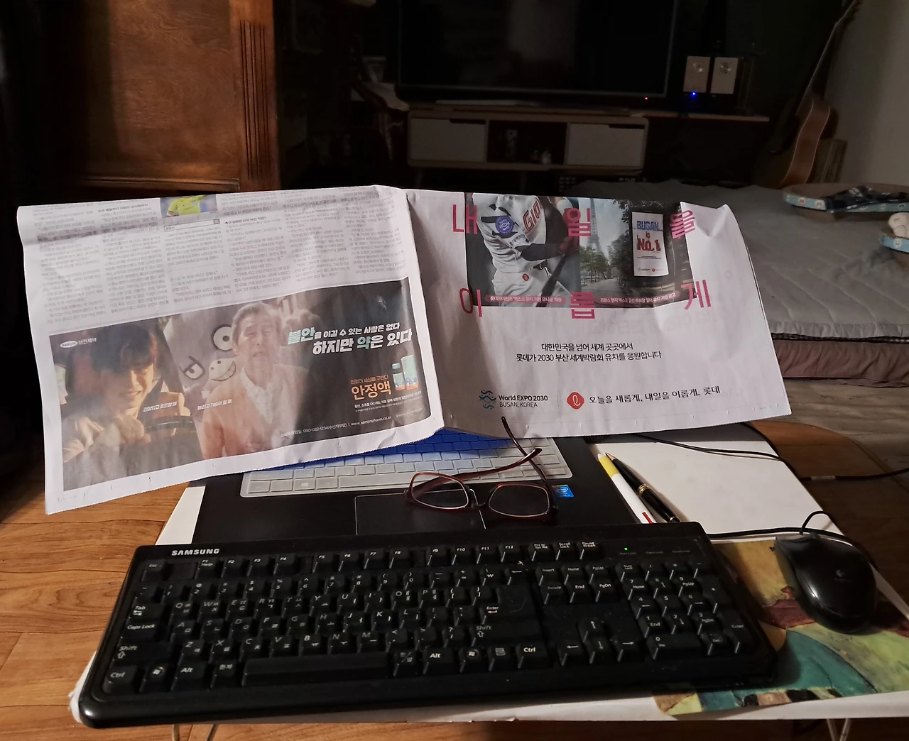 눈꺼풀이 무거워져 노트북을 켜놓고 그대로 누웠다. 밤이라 컴퓨터 모니터 불빛이 상당히 밝아 신경이 쓰였다. 저러다가 다 날아가면 어떡하지? 걱정도 됐다. 벌떡 일어나 신문지로 모니터를 덮었다. 신문지를 덮어놓으니까 마음이 조금 진정됐다. 노트북도 나처럼 쉬었다 내일 하면 될지 모른다. 근거도 없이 막연한 기대를 해보다 잠이 들었다.
