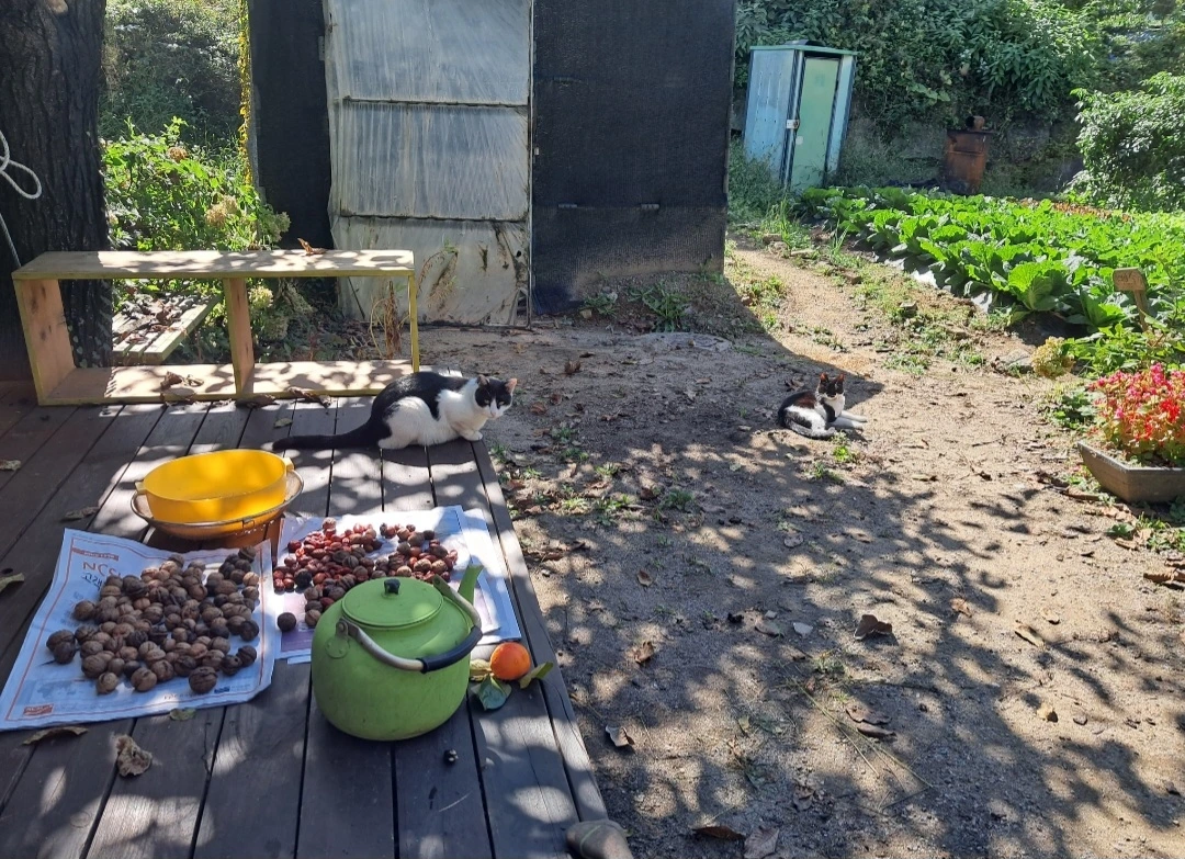 다음날 풀치는 돗자리에 말리고 있는 가을빛 한 알을 집어 들고 마당으로 내려왔다. 평상에 앉아 돌로 깨서 서 있는 나에게 주었다. 풀치 손이 더러워 받아먹을까 고민하다 맨 정신이라 받아 먹었다. 정말 고소했다. 사다 먹은 거하고 비교할 수 없었다.