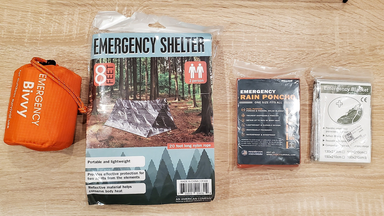 17. 왼쪽 상단의 사진은 불을 피울 때 바람을 불어서 불을 살릴 수 있는 blow tube라는 물품이다. 생존 전문가로부터 불 피우는 것이 실제로는 상당히 어렵다는 것을 배웠고 또 스스로도 경험해 봤기 때문에 불을 잘 피울 수 있도록 여러 도구를 준비해 두던 참에 간단한 튜브로 산소를 공급하게 되면 더 쉽게 불씨를 살릴 수 있다는 것을 알게 되었다. 가격도 저렴하고 무게도 무겁지 않기 때문에 하나 구매하여 생존 배낭에 비치해 두었다. 18. 우측 상단의 무전기는 위급 상황에서 우리 가족 네 명의 단거리 연락 수단으로 사용될 수 있을 것이다. 짧은 거리라도 혹시 떨어져서 이동해야 한다거나 식량이나 식수 확보를 위해 잠시 가족끼리 떨어져야 할 경우에도 사용될 수 있을 것 같다. 장애물이 없다면 수백 미터 거리에서는 의사소통이 가능한 것은 확인했고 가족 각 구성원이 자기 색깔을 알 수 있도록 색이 다르다는 것과 사이즈가 작고 무게가 가볍다는 것이 마음에 든다. 다만 헤드렌턴과 이 무전기용으로 상당수의 AAA 건전지가 생존배낭에 포함되었는데 그 무게가 상당해서 계속 생존배낭에 포함할지 고민 중인 물품이다. 19. 오른쪽 하단은 유명한 Fireball 위스키의 50ml 미니어처이다. 나는 술을 전혀 마시지 않지만 추운 날씨에 체온을 올리는데 도움이 될 수도 있고 유사시에는 소독용으로도 사용될 수 있을 것이다. 또 생존 전문가에 위하면 유사시에는 화폐 대신 물물교환이 이루어지게 되는데 이때 술은 그 가치가 제일 높은 물건 중에 하나라고 한다. 그래서 사실 가격도 저렴해서 더 많이 넣어 두고 싶었지만 무게의 압박으로 인해 두 개만 넣어 두었다. 20. 왼쪽 하단은 그야말로 생존 물품들이다. 오른쪽부터 각각 유사시에 체온 유지를 위한 emergency blanket, 우천 시 입을 수 있는 emergency pancho, 비와 이슬을 피할 수 있는 공간을 만들기 위한 emergency shelter, 그리고 잠을 자기 위한 emergency sleeping bag이다. 모두 은박지 같은 소재로 되어 있어 매우 가볍지만 유사시에 이러한 물품이 있는 것과 없는 것의 차이가 삶과 죽음을 결정 지을 수도 있으리라 생각한다.