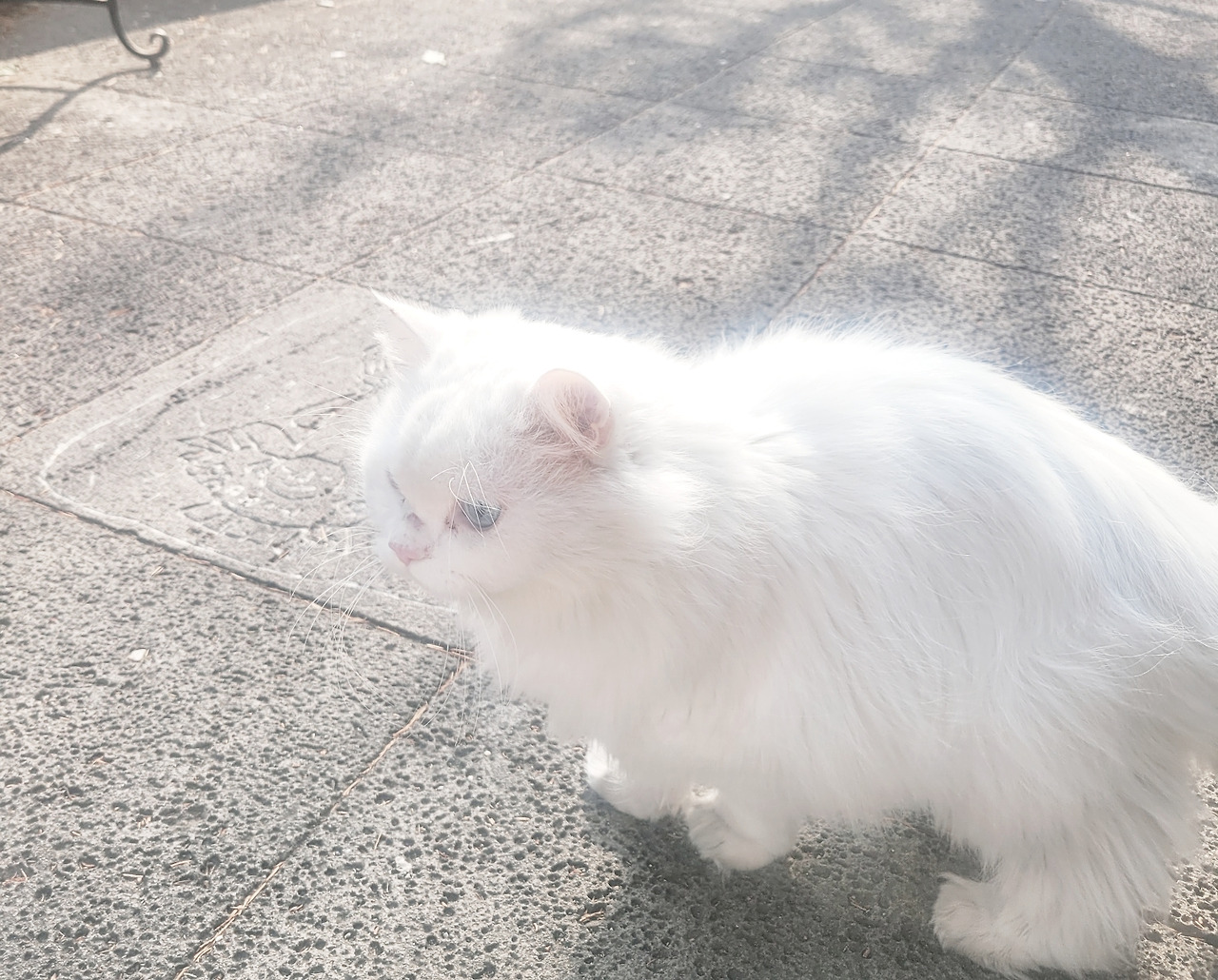 제 시선은 하얀색 고양이에게 머물렀습니다.