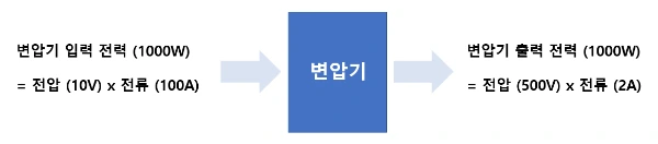 변압기로 들어간 전력과 나온 전력의 크기는 동일하므로 전압이 커지면 전류는 작아지고, 전압이 작아지면 전류는 커지게 된다. 이런 원리로 전압을 올리면 전류가 작아져 전송 손실이 작아진다. 결국 전송 손실을 줄이기 위해 전압을 올리는 것이다. 그렇다면 전압을 극단적으로 높이면 어떨까? 손실은 아주 작아지겠지만 전력 기기들과 전선들이 절연이 되지 않아 모두 타버리는 문제가 있다.