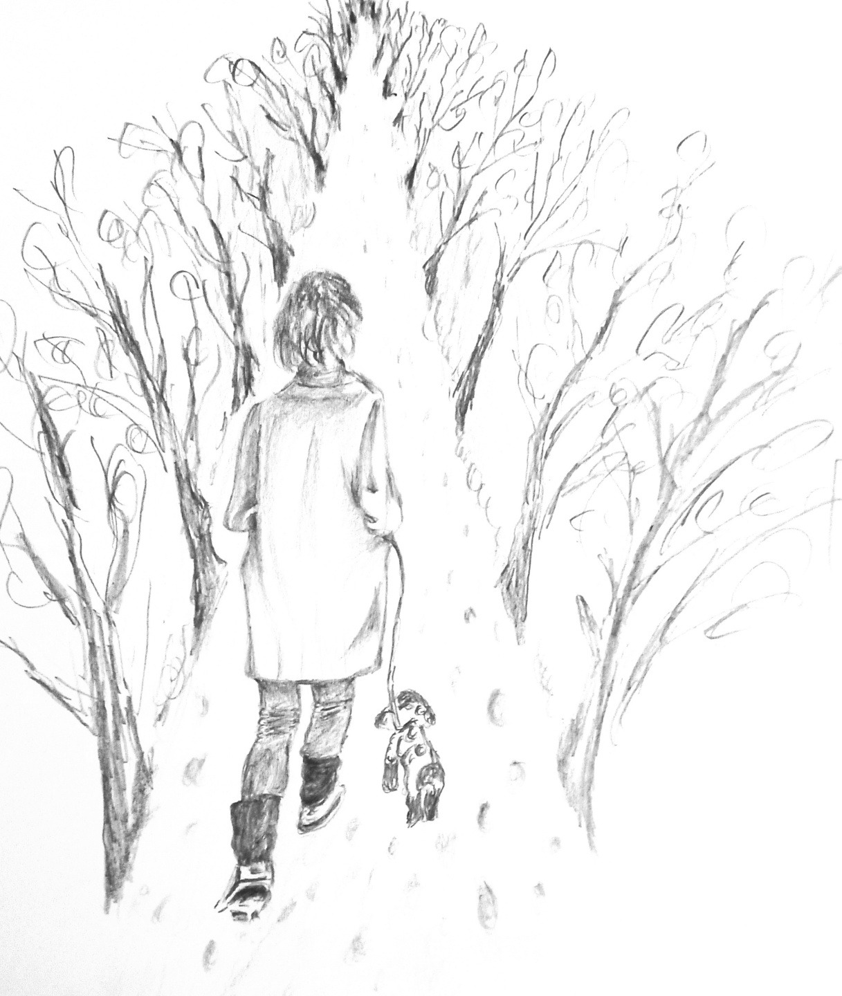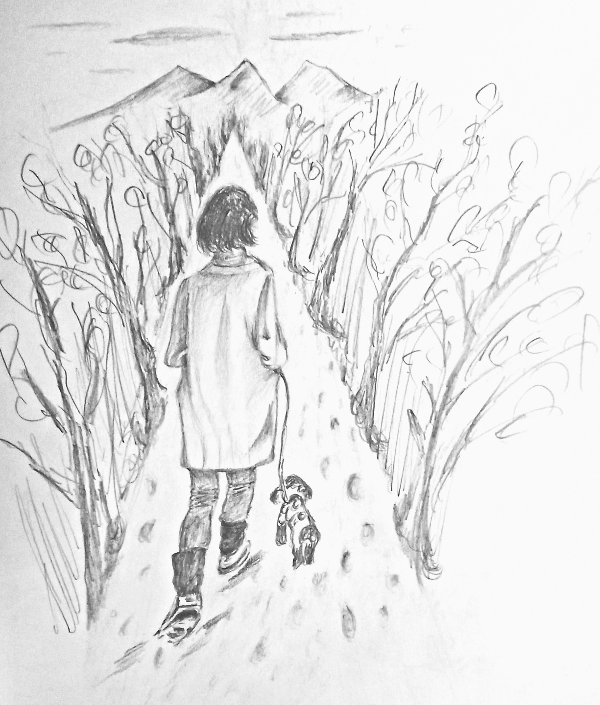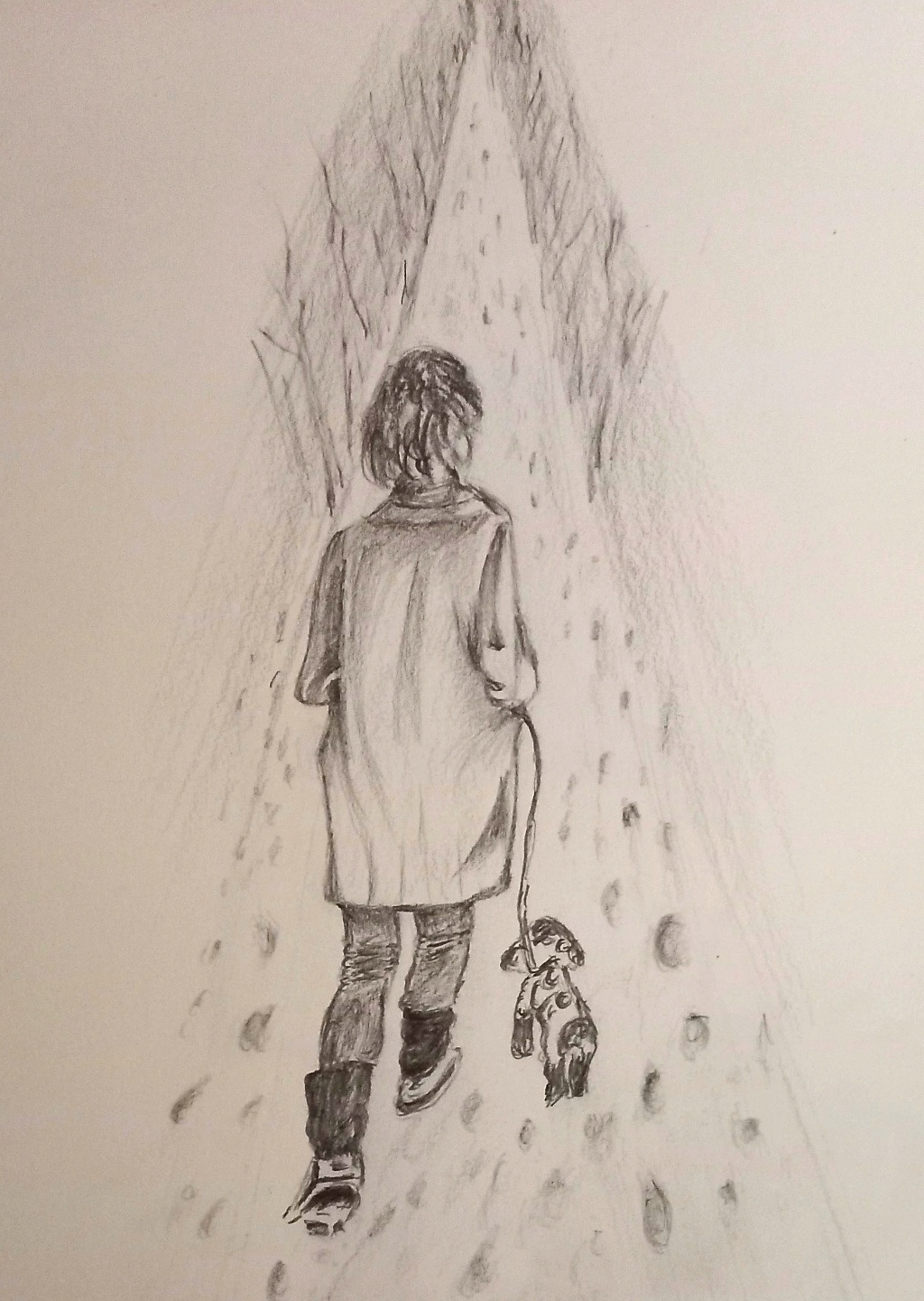위 그림에서 처음 그림(왼쪽 1차시도)은 원근법을 익히지 못한 상태에서 사람과 강아지를 그린 것이고,