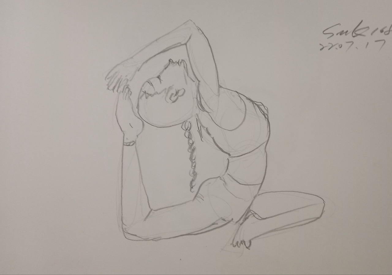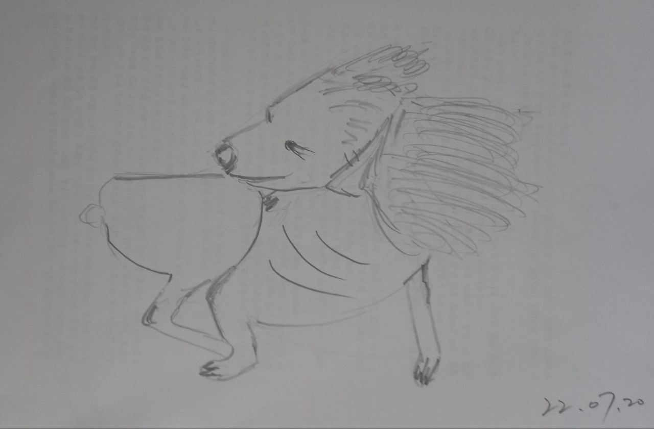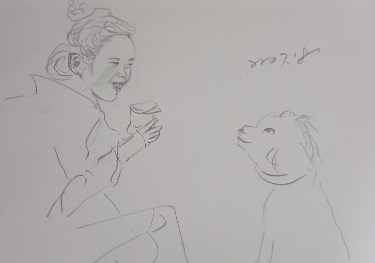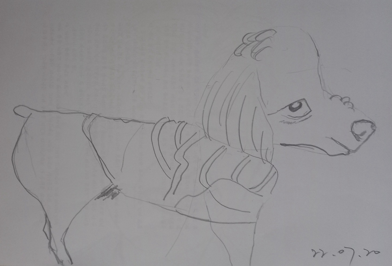 강아지, 사람을 위주로 그려봤습니다. 주로 3분 정도 소요되었지만 1분 걸린 것도 있고 5분 걸린 것도 있습니다. 빨리 그리다 보니 윤곽이 어설프고 각도도 맞지 않고 디테일도 없습니다. 빨리 그린 그림을 그냥 두자니 성의 없어 보이고, 디테일을 더하면 시간이 소요되어 컨투어 드로잉 취지에 맞지 않는 딜레마가 있었습니다. 컨투어 드로잉이 아니라 퀵드로잉 된 것도 있습니다. 이런 갈등을 겪으면서 단숨에 40점 정도를 그렸습니다. 스케치 북이 아까운 생각이 들어 A4용지 이면지를 사용했습니다. 그래도 40점 정도를 한두 시간에 그리다 보니 내가 갑자기 만화작가가 된 느낌, 한편으로 그림 천재가 된 느낌이 들었습니다. “나도 단숨에 그릴 수 있구나” 물론 성의 없어 보이고, 이것저것 균형 맞지 않은 면도 많지만 말입니다.