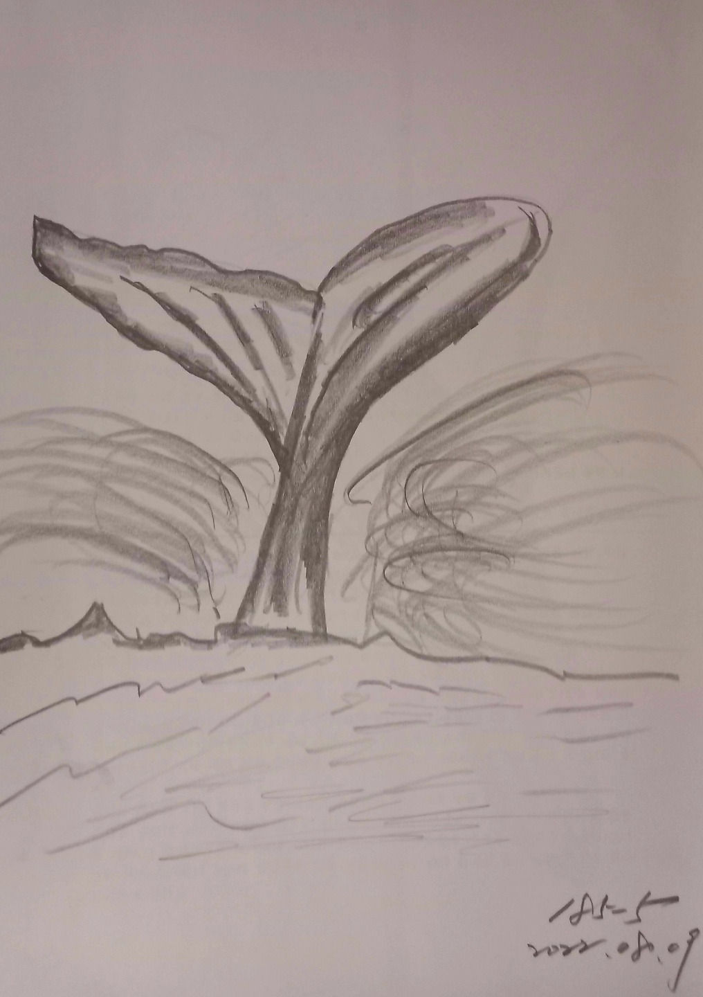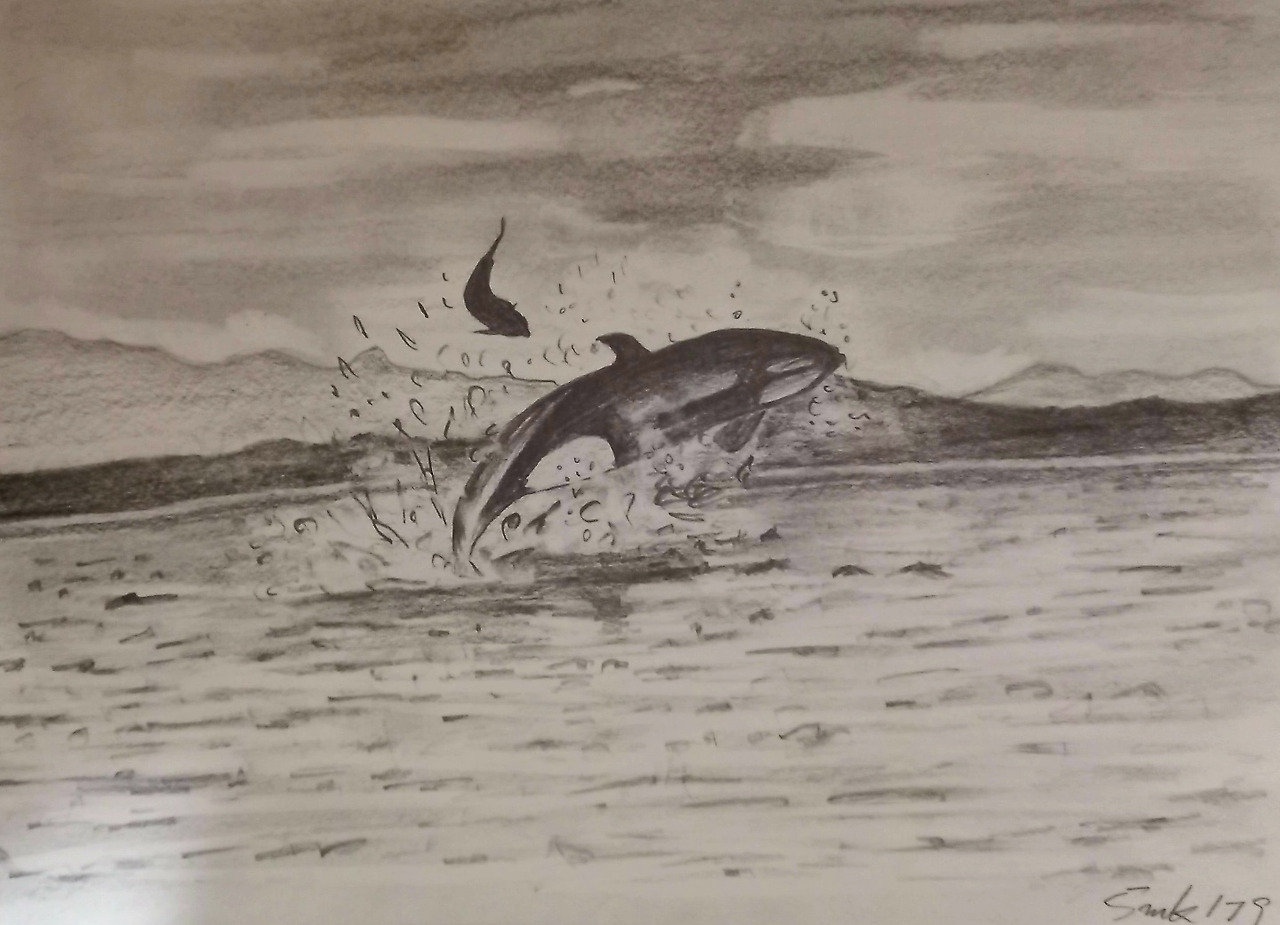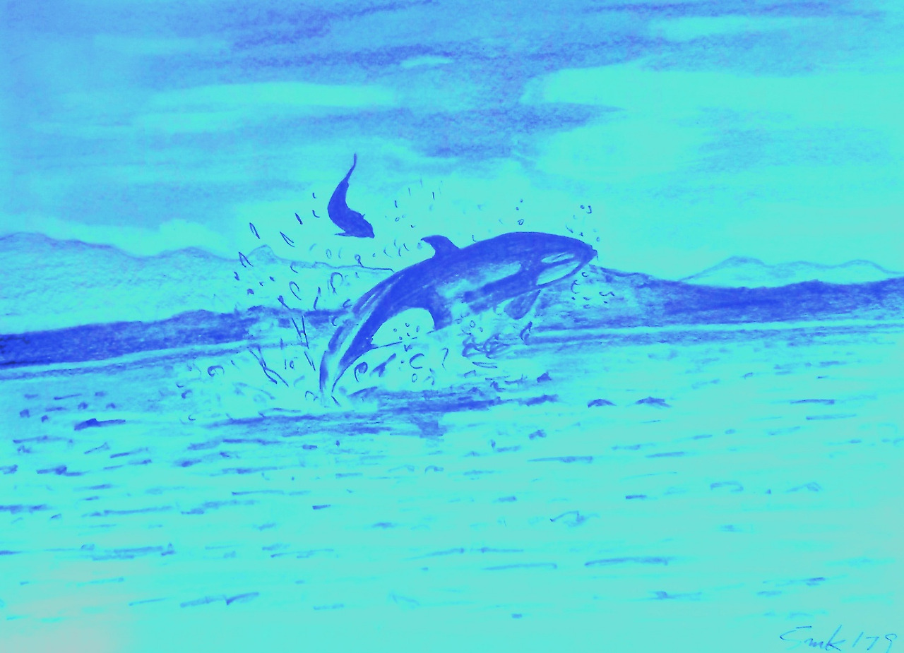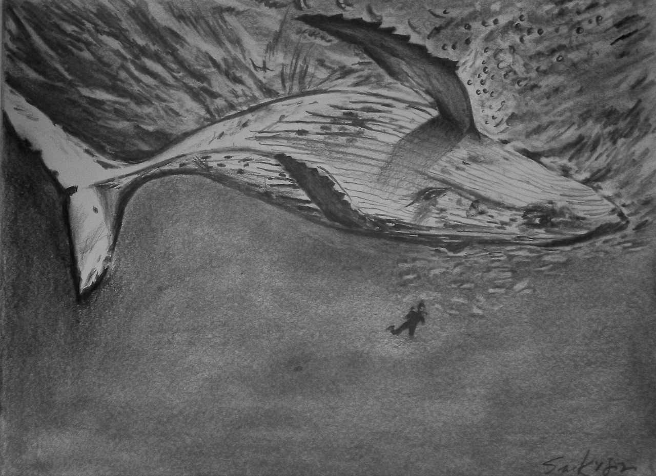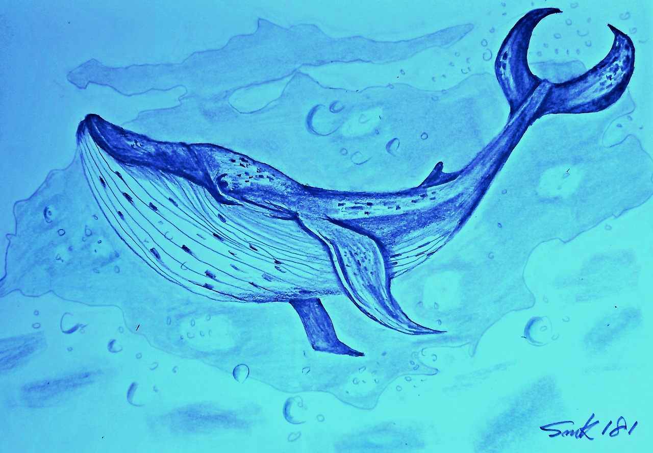 <#182:아래 장남원 작가의 고래 사진작품을 모사 드로잉>