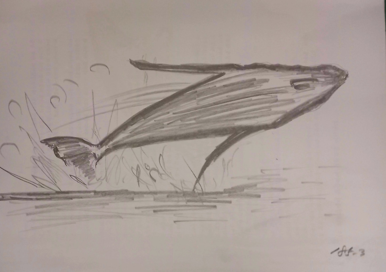 위 드로잉들을 업로드 후 며칠 뒤, 고래에 대한 미련이 남아 3분 러프 드로잉으로 몇 점 더 추가로 그려 본 것들입니다. 말 그대로 디테일 없이, 러프하게(거칠게) 그린 거니 '느낌'으로만 봐주시면 좋겠습니다.