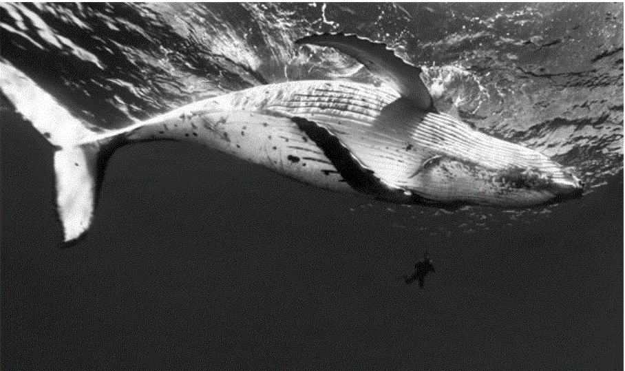 고래는 특유의 울음소리로 소통하거나 노래하는 동물로 유명합니다. 마치 관악기와 같은 울음소리를 끊임없이 이어가면서 부르는 고래의 노랫소리는 사람이 들어도 굉장히 아름답고 몽환적이고 환상적인 기분이 듭니다. 간혹 브리칭을 하는 고래를 가까이 목격하면 솟구치는 동시에 울려 퍼지는 울음소리를 들을 수 있는데 물소리와 함께 울려 퍼지는 고래의 울음소리는 웅장함 그 자체 때문에 바다의 웅장한 분위기를 내거나 바다 괴수의 울음소리를 만들 때 음향효과로 사용되기도 합니다.