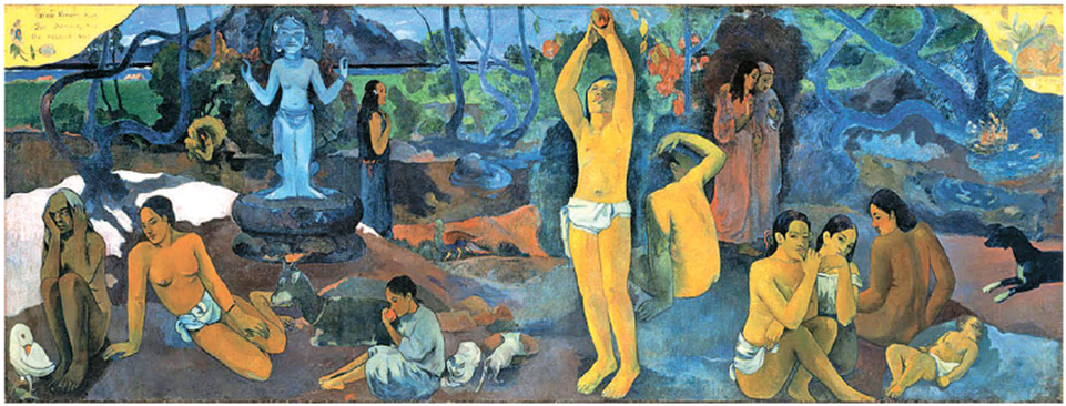 예술가의 생각도 다르지 않았다. 'Where Do We Come From? What Are We? Where Are We Going?'(우리는 어디에서 왔는가? 우리는 무엇인가? 우리는 어디로 가고 있는가?) 이 그림은 폴 고갱(1848-1903)이 죽기 5년 전 완성(1897)한 작품이다. 그는 이 그림을 그리는 것으로 생을 마감할 생각이었던 것으로 보인다. 타이티에서 자유로워진 것 까지는 좋았으나 가족을 떠나 외롭게 사는 것, 너무나 아꼈던 딸의 죽음, 경제적 궁핍, 건강 악화 때문에 그는 죽기를 결심하고 이 그림을 시작했던 것이다. 자살 미수 후 그는 지인에게 보낸 편지에서 “최악의 상황 속에서 자신에게 남은 모든 정력을 이 작품에 쏟아부었다”라고 썼다.