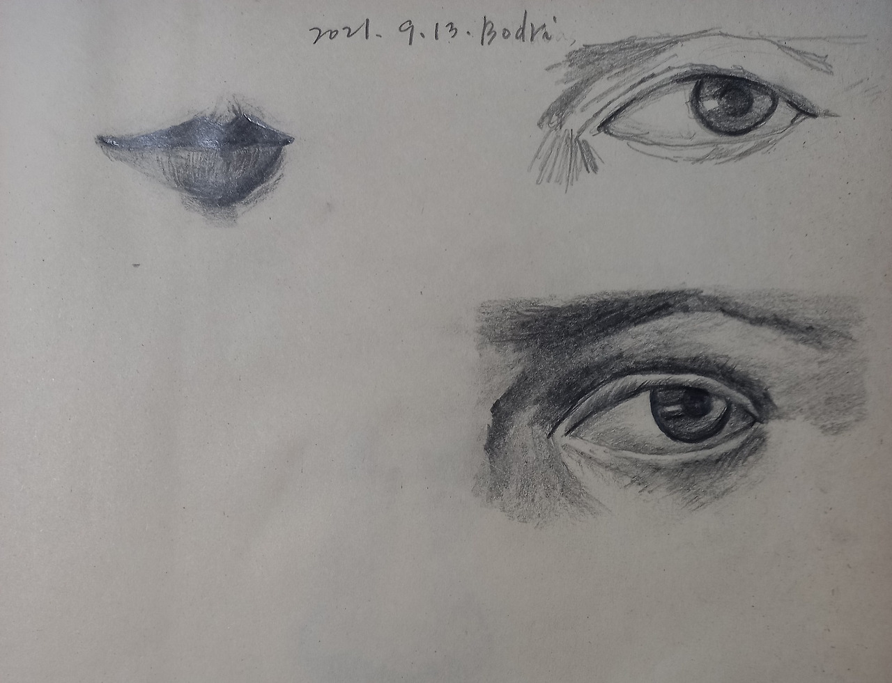 선생님이 날짜와 사인을 해두라고 하시네요. 이런 사인, 처음이라 쑥스럽네요. 당황하여 오늘이 9.14일인데 날짜도 9.13일로 썼네요. 예명도 별도로 준비한 게 없어서 그냥 우리 강아지 이름 '보드리'를 영문으로 썼습니다. 저의 생애 최초 드로잉입니다.