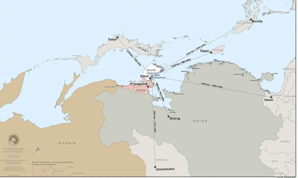 최근 주한미군이 내부 교육용으로 제작한 ‘거꾸로 뒤집힌 동아시아(East-Up) 지도’는 이 점을 극적으로 보여준다. 지도는 단순히 180도 회전한 것이 아니라, 한반도를 중심에 두고 대만·필리핀·베트남까지 이어지는 해상 축을 한눈에 드러낸다. 제이비어 브런슨 사령관은 이를 “관점을 바꾸기 위한 노력”이라 설명했다. 뒤집힌 지도는 한반도가 ‘전방 외곽 기지’가 아니라 북·중·러로 이어지는 북측 축과 남측 해상 축 사이에서 전략적 중심임을 보여주었다. 같은 지도인데 관점을 바꾸니 중심과 변방이 뒤바뀐다.