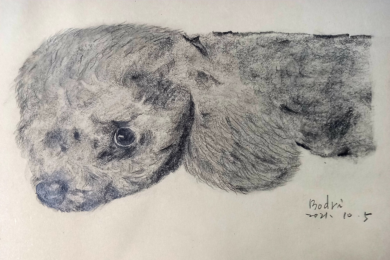 제가 드로잉을 하게 된 계기는 제1화에서 언급했듯이 어릴 적부터의 로망을 위한 것이었지만, 직접적인 계기가 된 것은 저의 차기 작품(책 제목 등 모든 것 아직 미정)으로 강아지를 소재로 한 책을 쓰고 싶어서였습니다. 강아지 그림과 함께 글을 쓰면 글과 그림이 한 작가로 되어, 아무래도 책의 완성도나 형태가 좀 더 저의 정체성 표현에 좀 더 가까워지지 않을까 하는 생각 때문입니다. 설령 잘 그리지 못하더라도 저의 글과 그림이 한 지면에 표현된다면 그 자체만으로도 큰 의미를 가질 수 있다고 생각합니다. 한마디로 <글, 그림 최송목> 이렇게 책이 발간되기를 바라는 거지요.