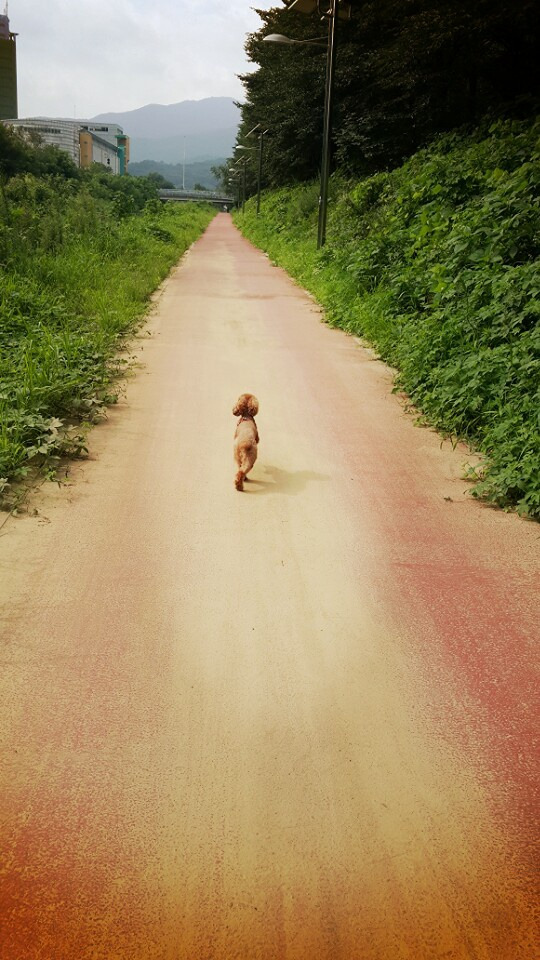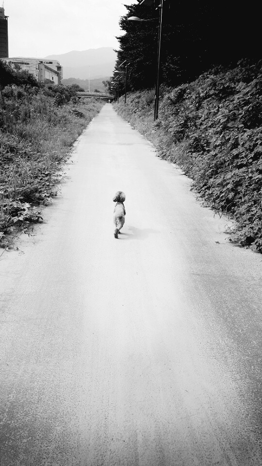 이 그림 보시고, 옆에 계신 동료분들이 '강아지가 외롭겠다'라고 말씀하시네요. ㅎㅎ 걱정 않으셔도 됩니다. 사실은 아침 산책 중에 제가 뒤따라가면서 찍은 겁니다. 결코 외롭지 않습니다. 오히려 나름 자유를 누리고 있습니다.