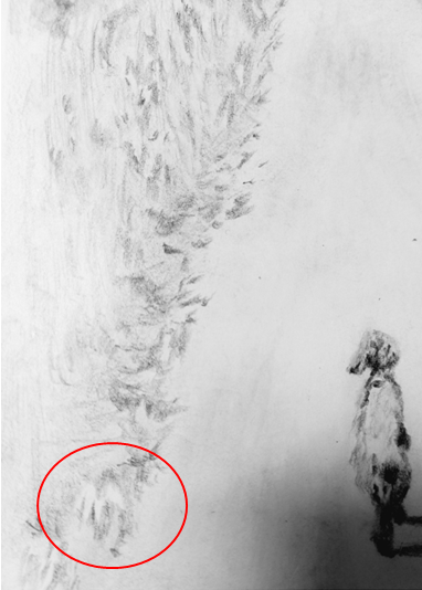마지막으로 길의 명암 표현인데요. 이것도 지우개로 밑그림 칠한 거를 그냥 지워주니 쉽게 해결되었습니다. 좀 아니다 싶으면 '다시 칠해주고 지우고...' 하는 작업을 반복했습니다.