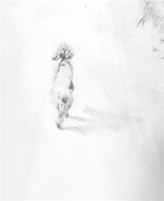 이 작은 엄지 손가락만 한 강아지 뒷모습 그리는데 거의 2시간이나 걸렸습니다. 상하 몸통 길이 조정에 실패하긴 했지만, 그래도 얼추 뒷모습의 형태는 갖추었네요.