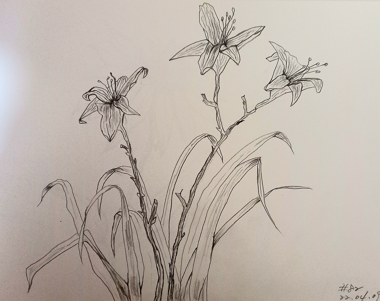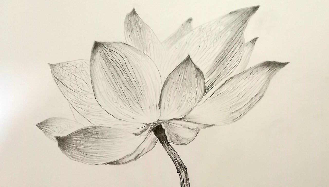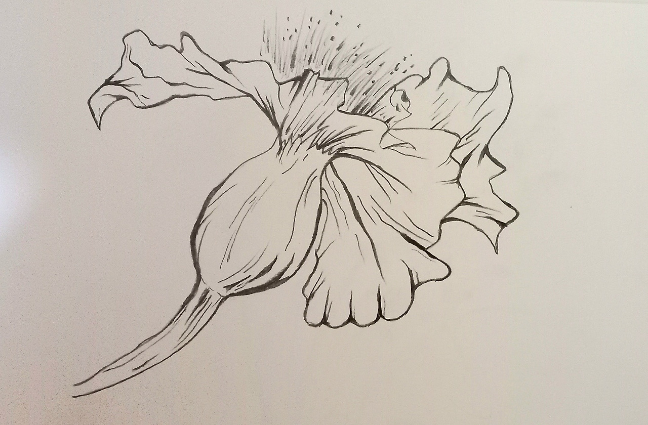 전체 꽃잎을 모두 섬세하게 그릴 필요는 없지만, 한 두 개는 아주 정확하게 그려줘야 전체 그림이 살아 보입니다. 그래서 꽃 모양을 집중 관찰하여 정확한 디테일을 묘사해 보는 것이지요.