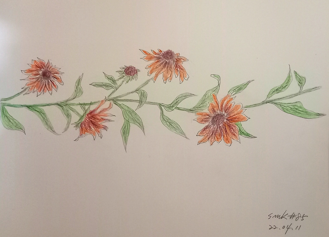 색연필로 그리다 보니 온전한 표현에 한계가 있었습니다. 내년 봄엔 좋은 물감으로 입혀 줄 생각입니다. 덤으로 다른 꽃들도 시샘할까 바, 몇 점 그려 은근슬쩍 붙입니다.